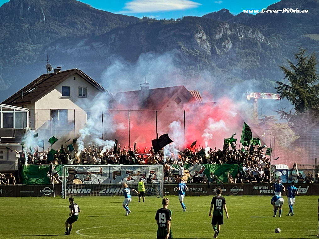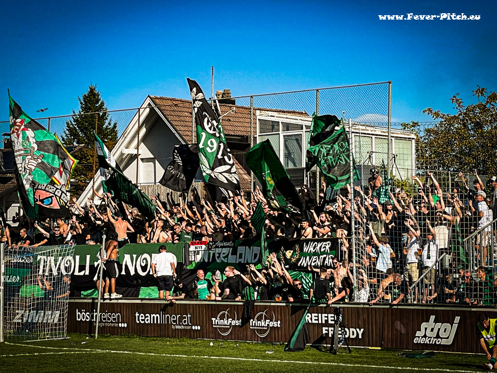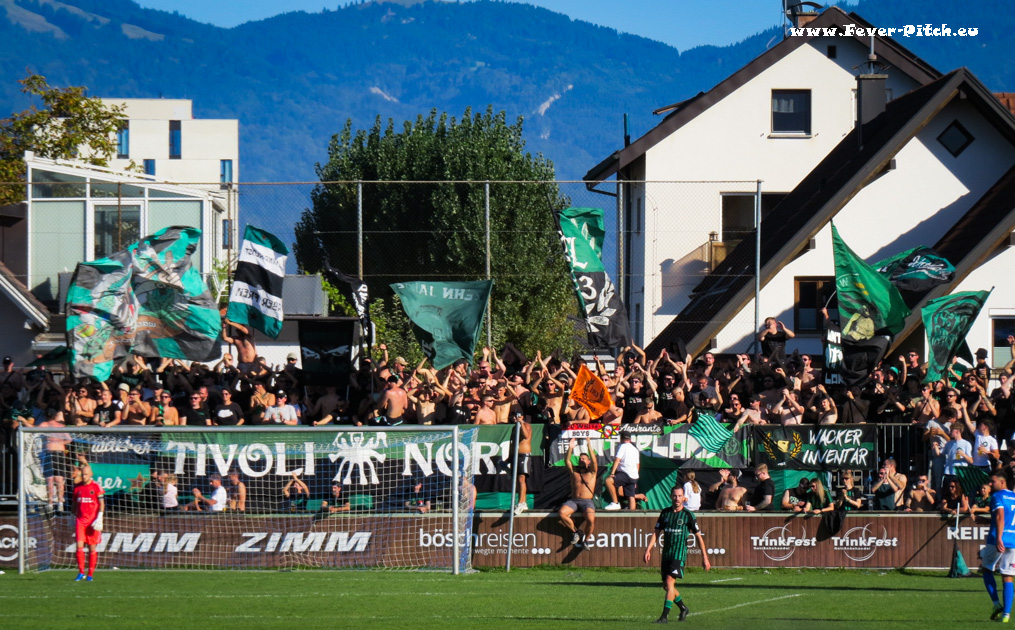 Ich genieße einfach nur das Gesamtpaket und fühle mich erneut privilegiert hier stehen zu dürfen. Geiles Wetter, schöne Gegend, starker Gästemob und dazu ein frisch Gezapftes in der Hand. Mehr braucht es nicht und so war man fast traurig, dass auch dieser durchaus torreiche Kick nach gut 90 Minuten endete. Innsbruck hält sich nach dem Aufstieg in die Regionalliga im Sommer weiter alle Möglichkeiten offen, den Durchmarsch in Liga 2 zu schaffen, wo es dann zu einem Duell mit den Feinden von Austria Salzburg kommen könnte.