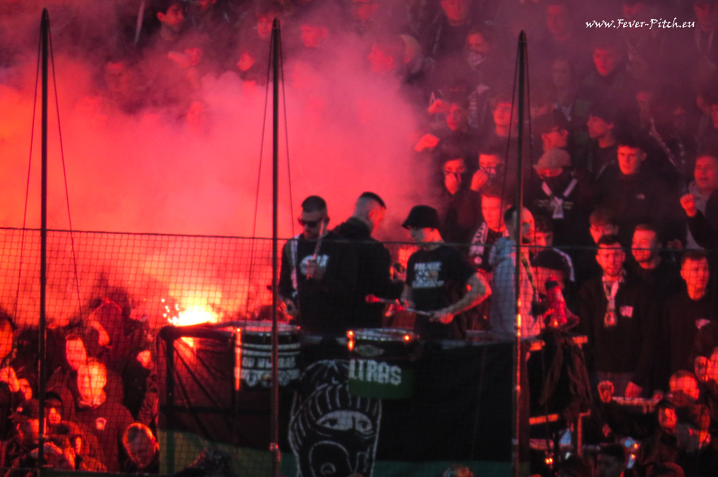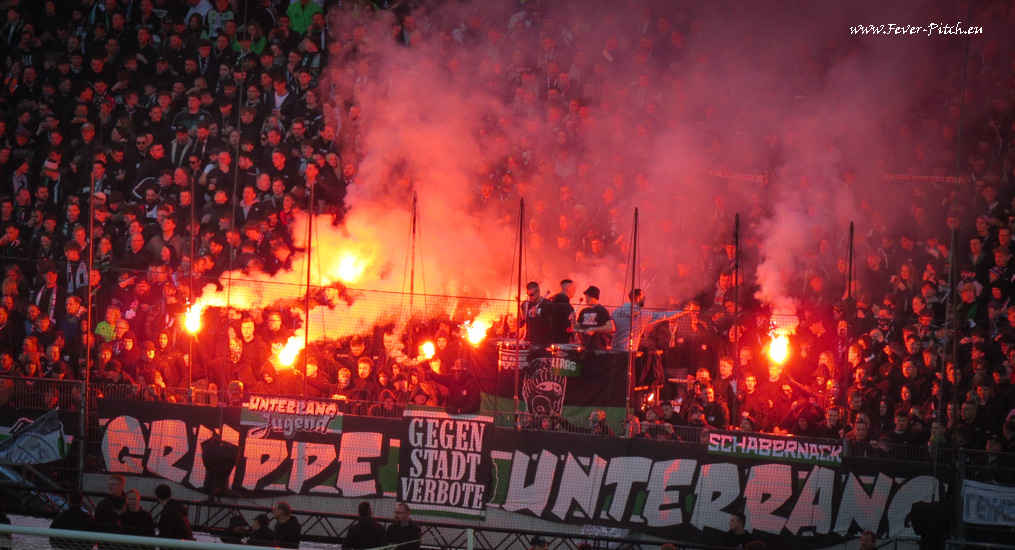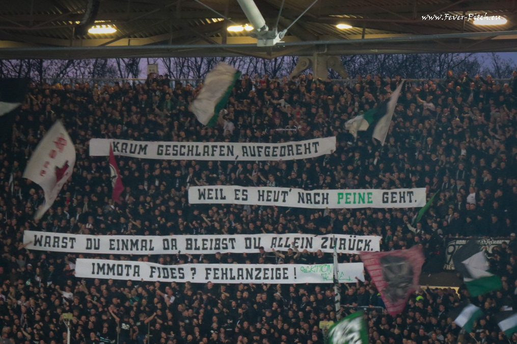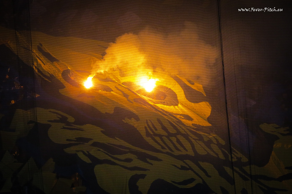 Licht im Gästeblock erloschen – in nichts nach. Zunächst wird das Transparent mit der