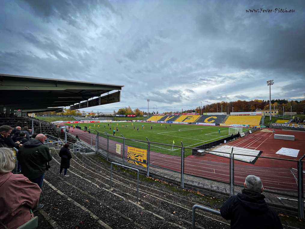 markante Sitzplatz-Gegengerade mit dem VFC-Schriftzug. Insgesamt ein recht