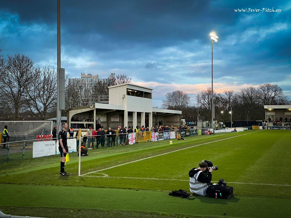 Heute gibt es hier Ligaalltag, die Zuschauerzahl ist mit gut 2.200 recht respektabel. Diesem sympathischen Club aus Londons Süden drücke ich jedenfalls die Daumen, dass man im Sommer die Klasse halten kann.