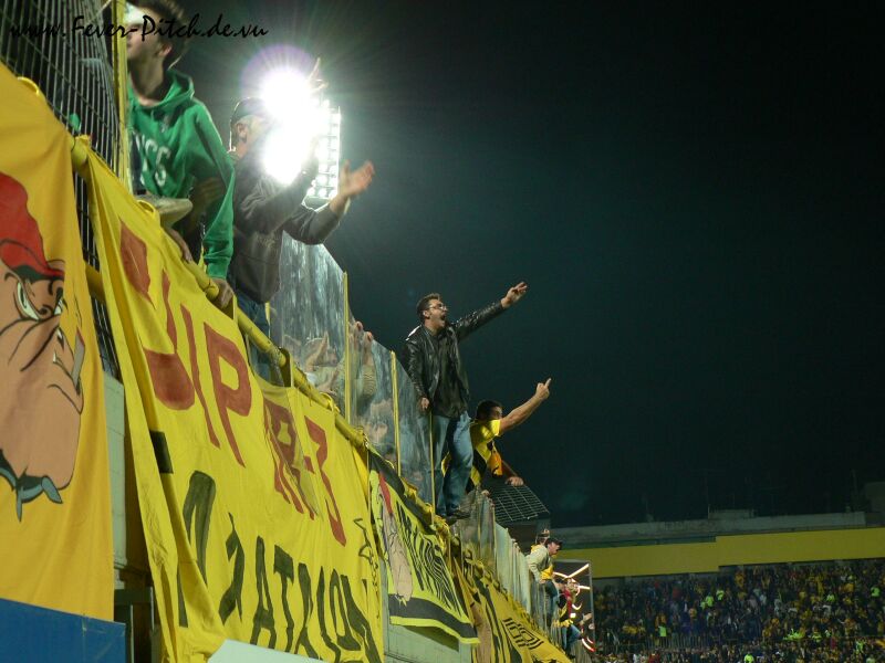 und auf den Hintertortribünen finden sich die stimmgewaltigen Heimanhänger.