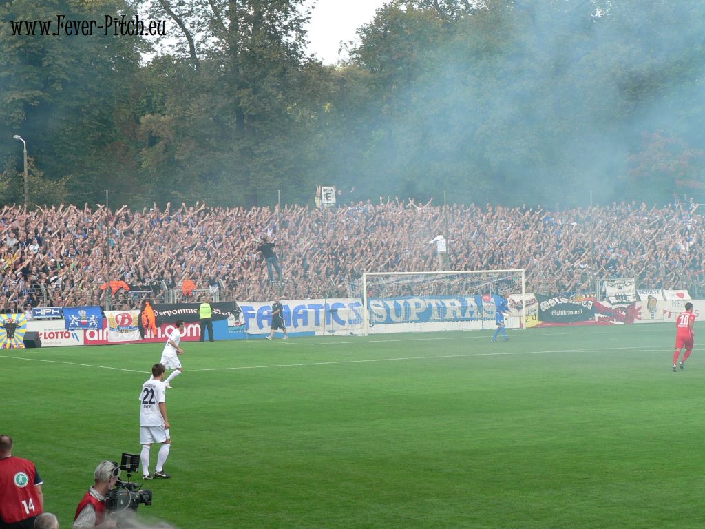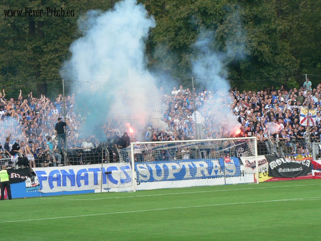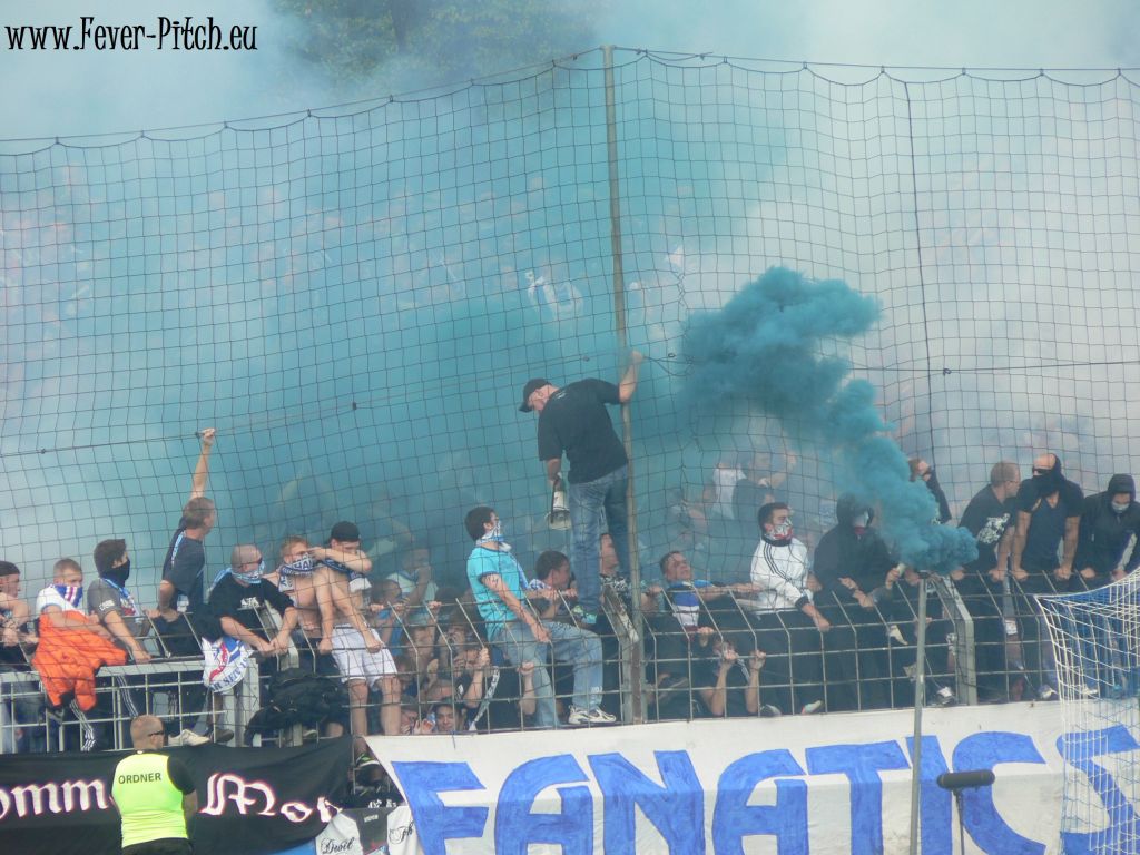 Heimspiel für die Mecklenburger, die mit einer kleinen Pyroaktion zu Beginn und