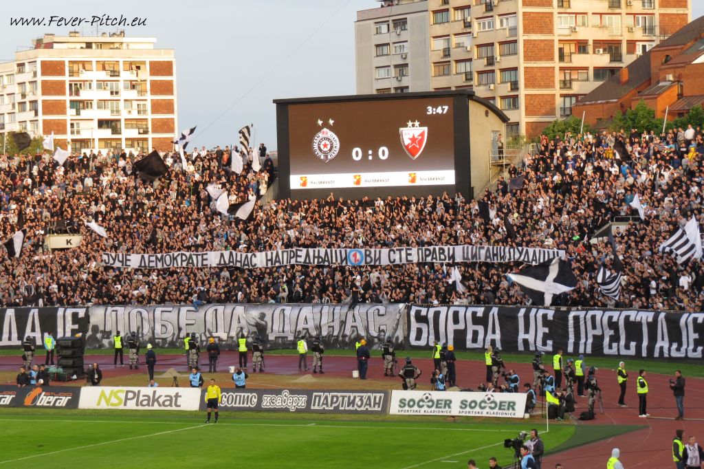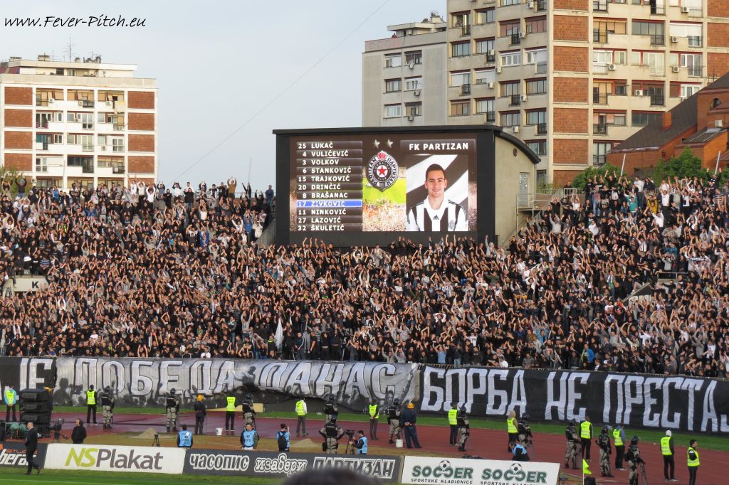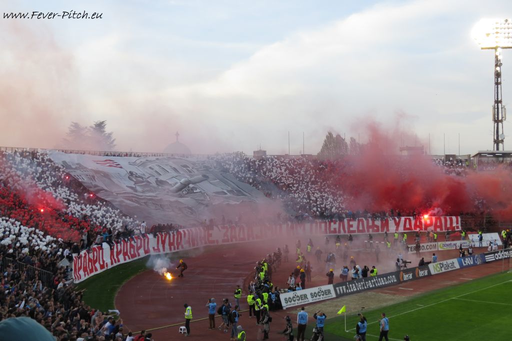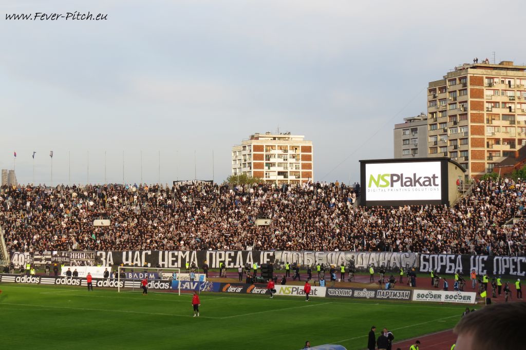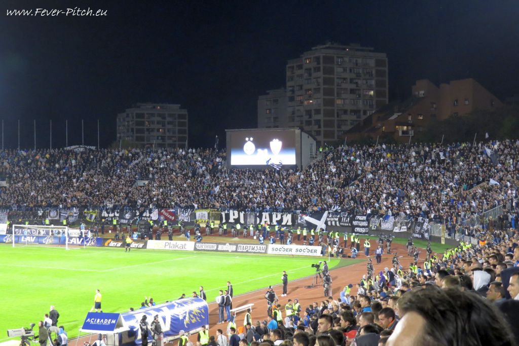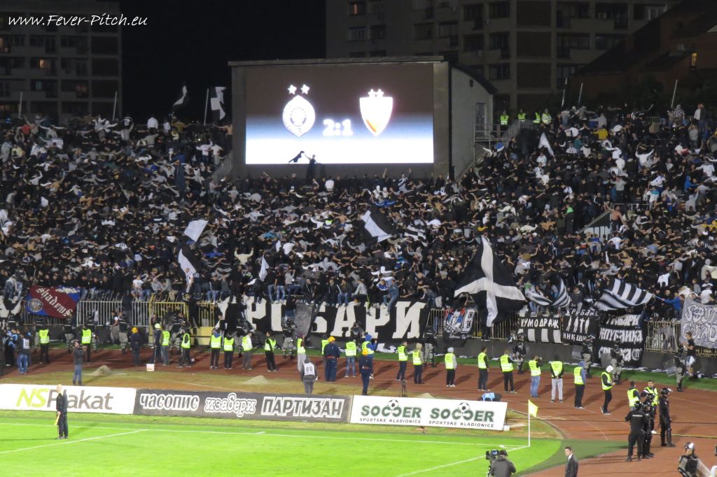 Vereinfarben, auf Heimseite hingegen ein schönes Fahnenmeer; Partizan ist ja