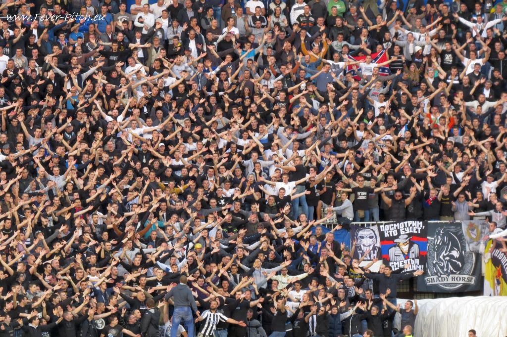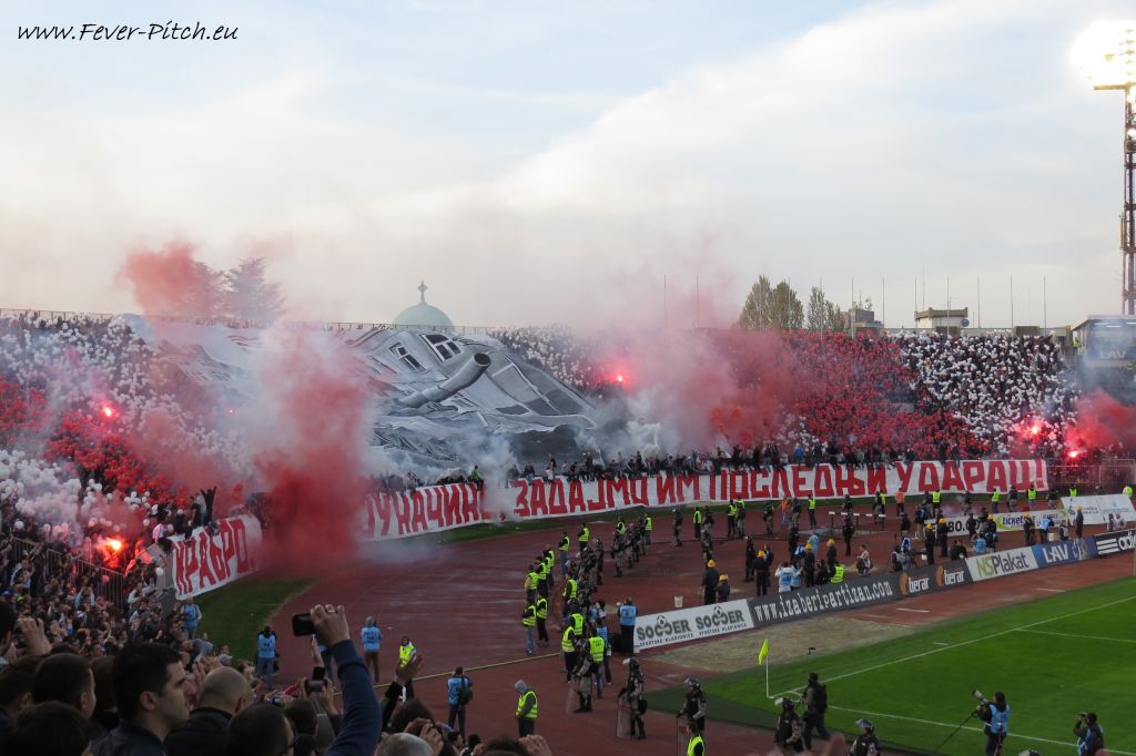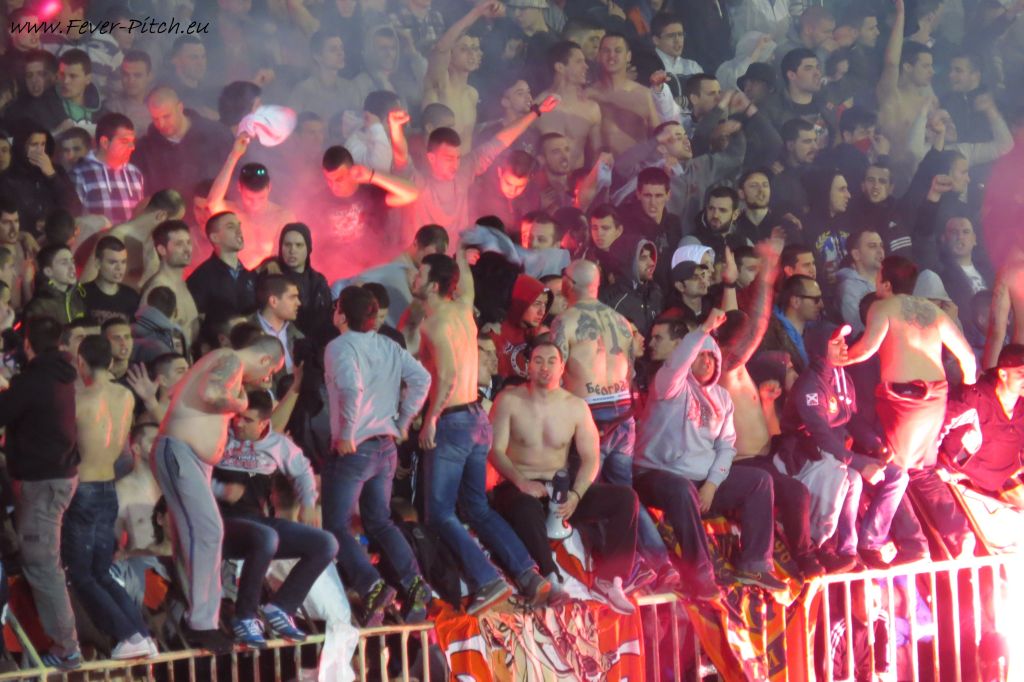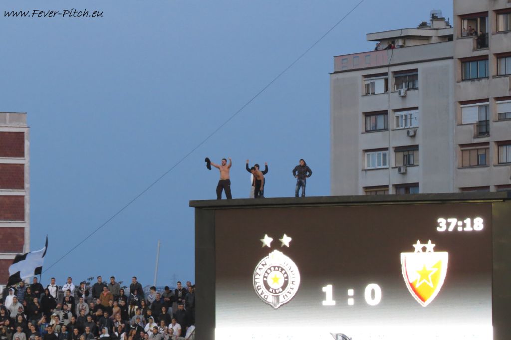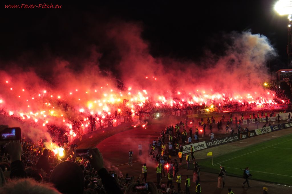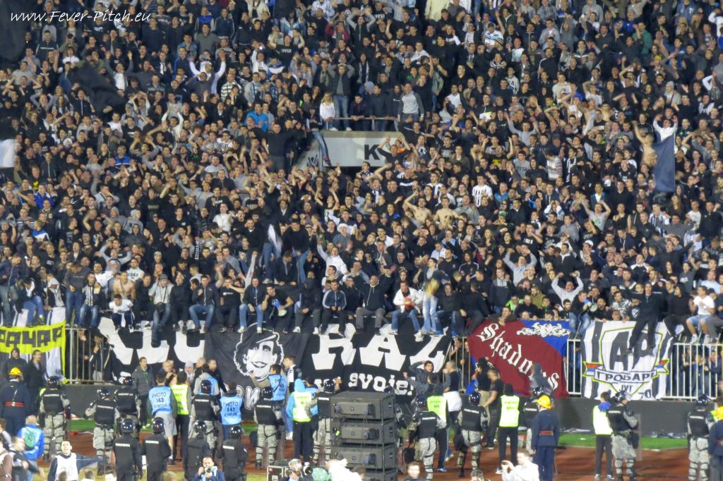 Vereinfarben, auf Heimseite hingegen ein schönes Fahnenmeer; Partizan ist ja