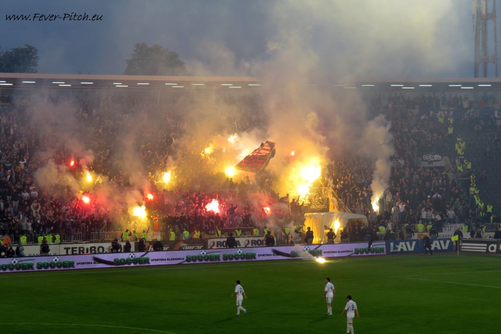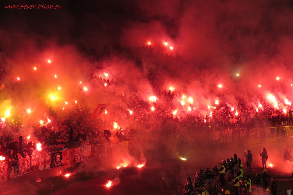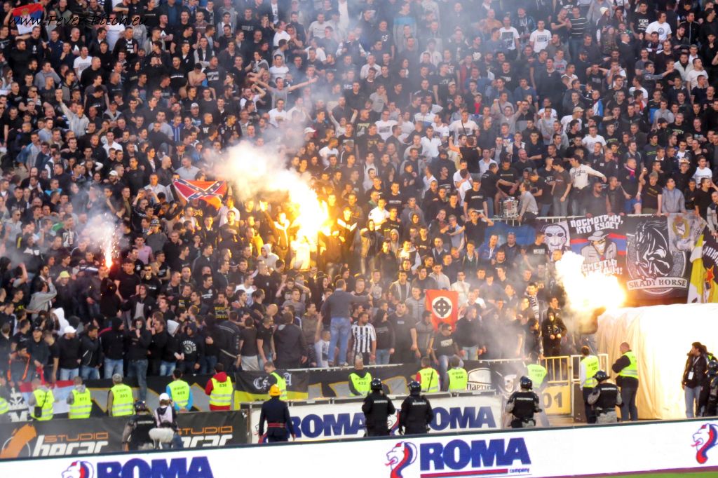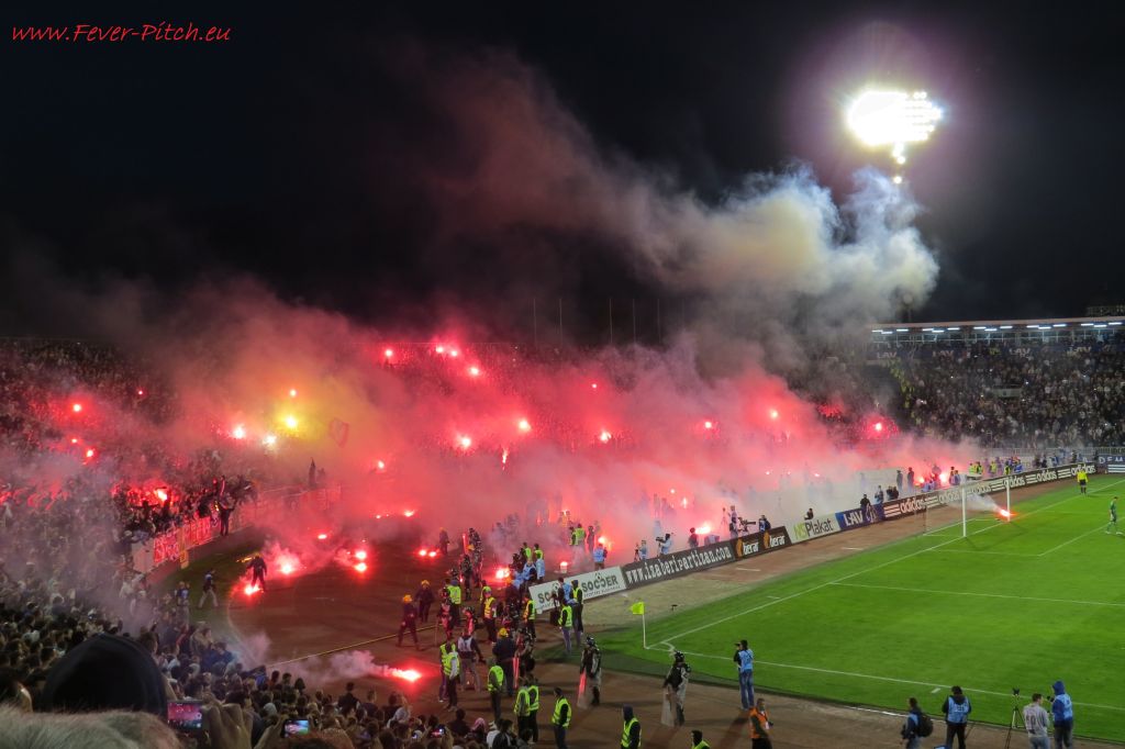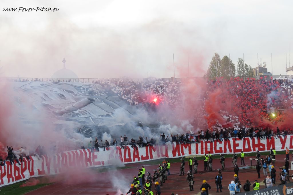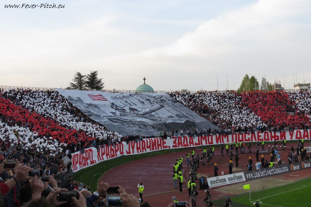 Vereinfarben, auf Heimseite hingegen ein schönes Fahnenmeer; Partizan ist ja
