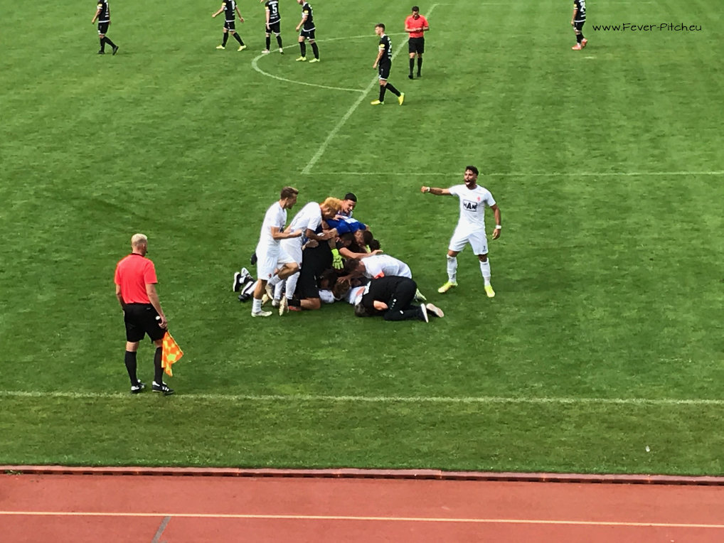 Ebenso wenig, wie dass eine Bullibesatzung sportlich gekleideter Lads aus Halberstadt anwesend ist, welche gelegentlich einen „Hal-ber-stadt-Chant“ von sich hören lässt und zu Mitte der zweiten Halbzweit irgendwie mit irgendwas Trouble hat und daher das Stadion verlässt, um sich nach Abpfiff mir vor dem Stadion im Bullenkessel zu präsentieren. Ziemlich geschenkter Tag für die Jungs würde ich sagen, zumal es für die Gastmannschaft nach zweimaliger Führung noch eine kernige 4:2-Niederlage setzt. Der Berline AK bleibt somit dem Spitzenreiter aus Hohenschönhausen auf den Fersen. Eben hier wurde nach Spielende ja noch der Blaubacke eingesammelt, der von einem unterhaltsamen Spielbesuch inmitten von Atzen mit fragwürdigen politischen Ansichten berichten konnte, ehe es die rund 5 Stunden auf den Heimweg ging.