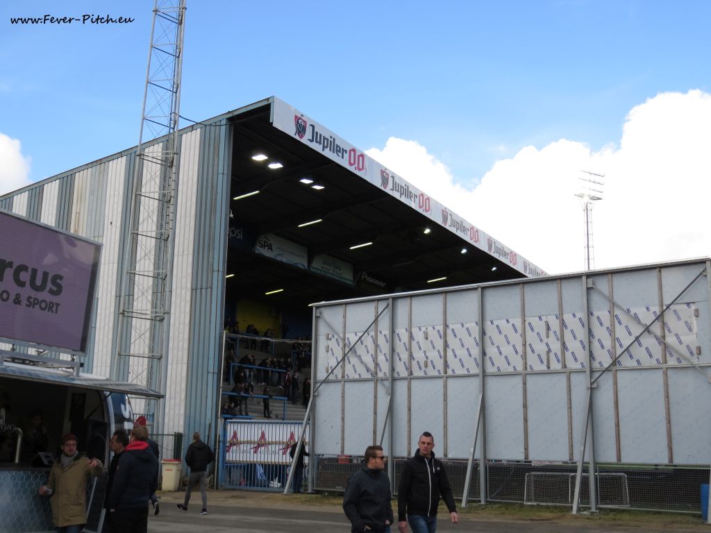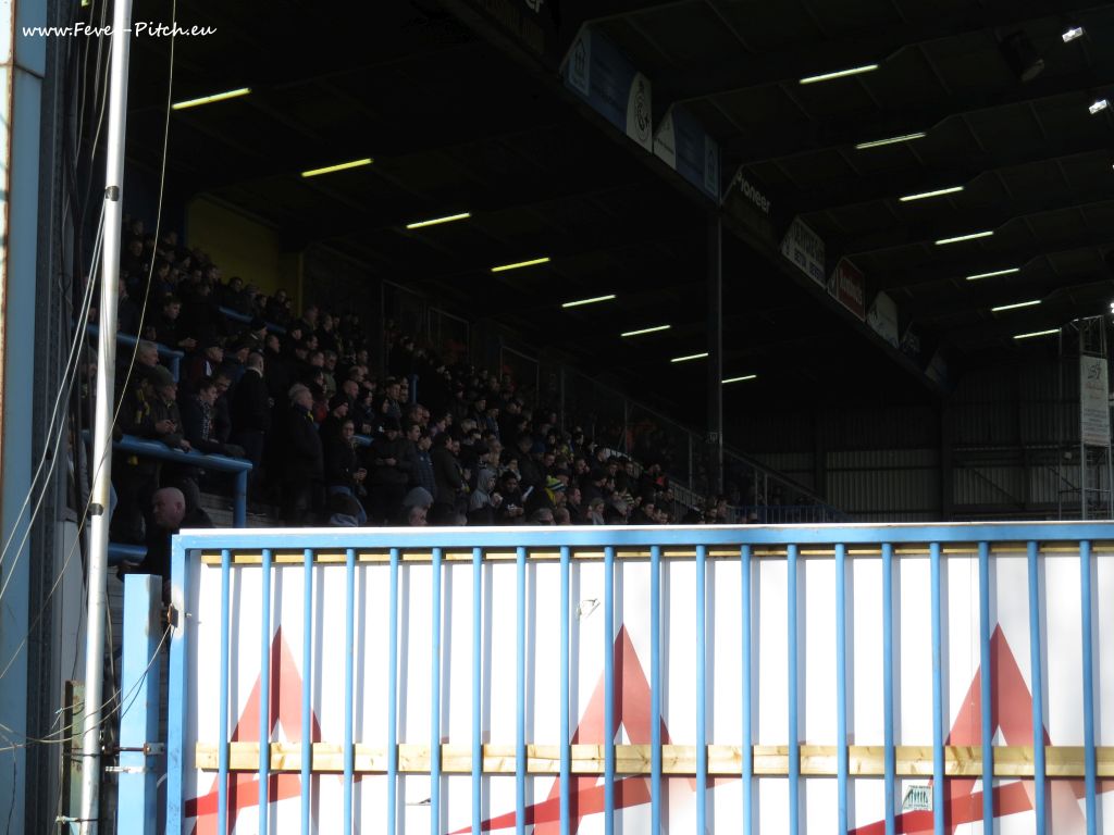 Exemplar gegenüber und eine reine Stehplatztribüne hinterm Tor, auf der sich
