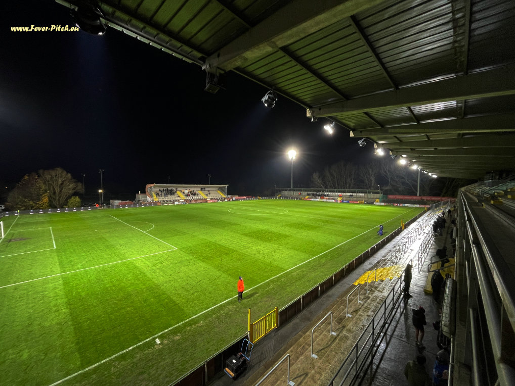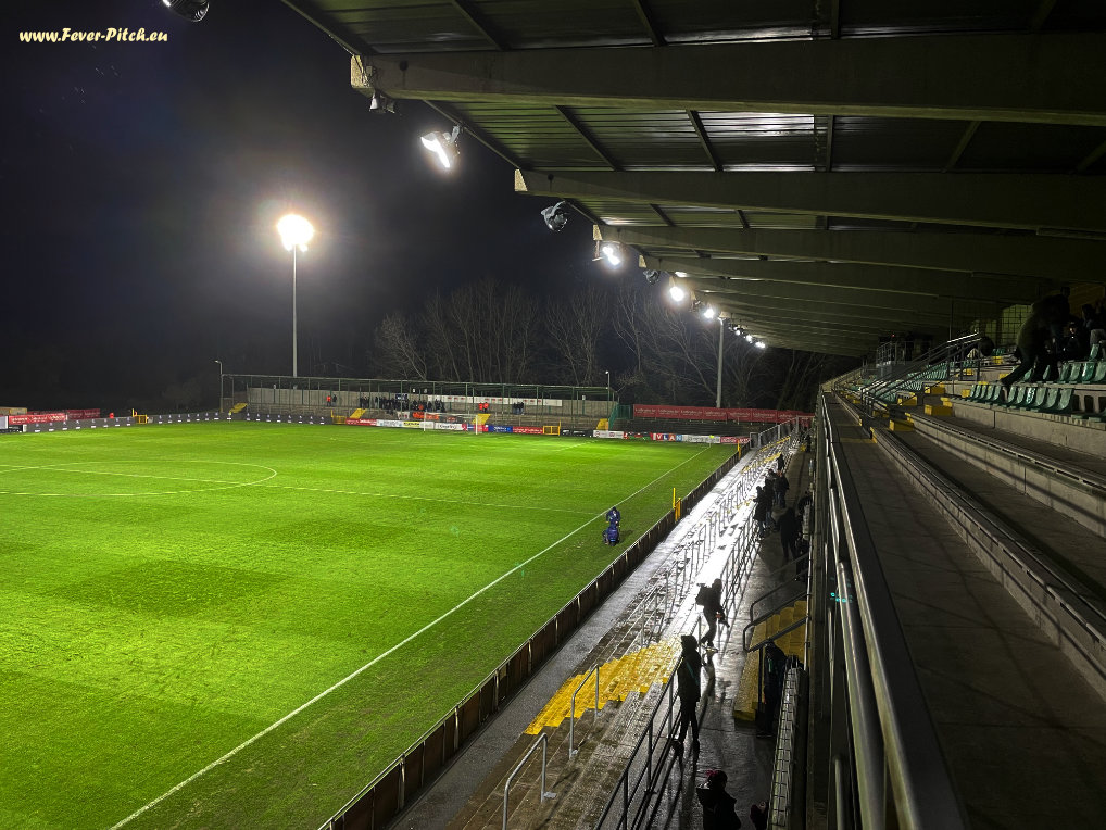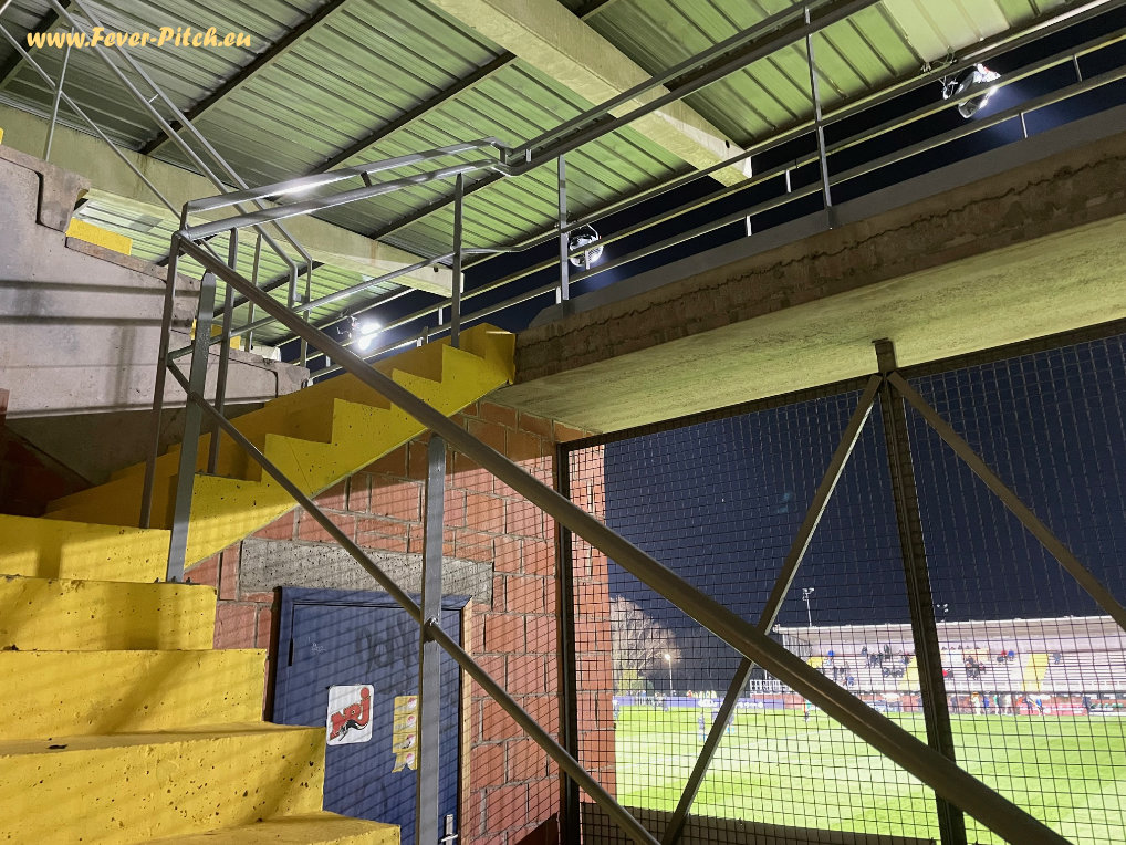 Gästeblock hinterm Tor einerseits und Vereinsheim auf der anderen Seite