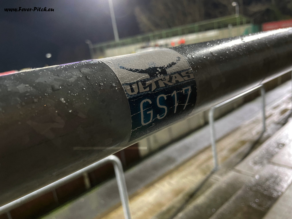 Ultras-Lappen stehen, wenngleich sich hier und dort Sticker im Stadion finden