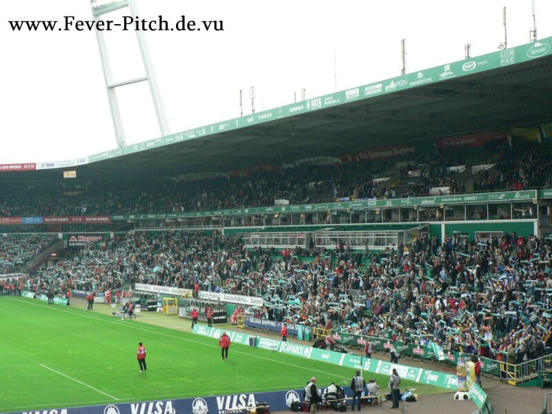 Werder bzw. Bremen Schriftzug auf Nord- bzw. Südtribüne) meldete heute