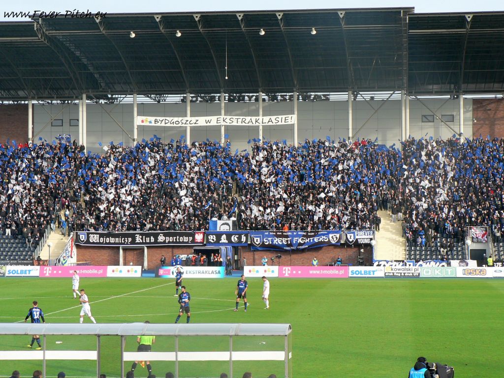 Spielbeginn ein brachiales " ZAWISZA BYDGOCZSZ" aus rund 2.500 Kehlen