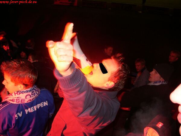 Neben uns waren zum Anpfiff rund weitere 150 Meppener auf der kleinen Tribüne