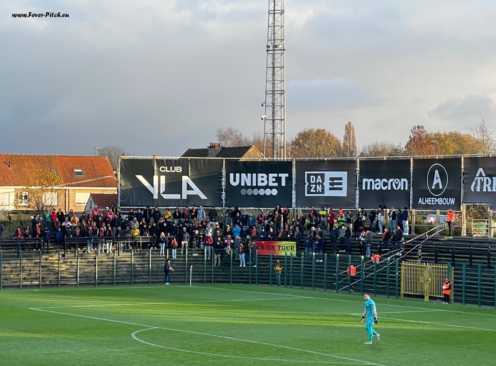 Trotz der hin und wieder über den hauptsächlich unüberdachten Gästebereich ziehenden Schauerwolken wird der Gästeanhang am Ende den Weg hierher nicht bereut haben, denn in einer spielerisch schwachen, aber dafür torreichen Partie gelingt Oostendes Daniel Perez in der 97. Spielminute der nicht unverdiente Ausgleich zum 3:3.