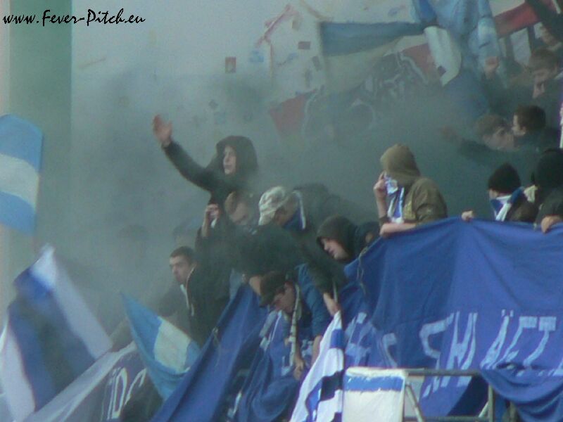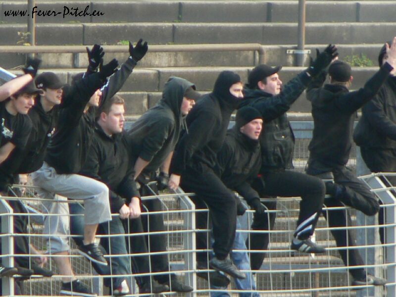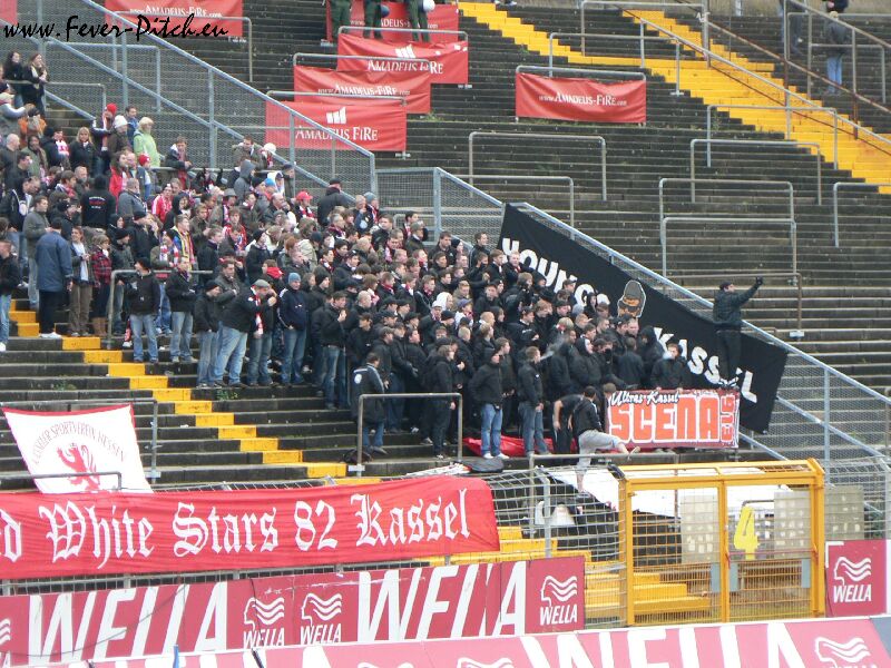 Kassel war zunächst überrascht aber ebenfalls sehr motiviert und so sprangen gleich mal einige Herrschaften über den Zaun auf die Tartanbahn und bewegten sich in Richtung Heimblock, was natürlich auch wilde Szenen nach sich zog. Ein Beispiel: Ein Kasseler springt über den Zaun und bekommt darauf volles Pfund den Gummiknüppel zwischen die Beine, ein weiterer Kasseler springt darauf ebenfalls auf den Platz und haut dem Cop voll eins vors Visier. So einen motivierten Gästeanhang sieht man ja nun auch nicht alle Tage. Irgendwann verließen wir dann auch das Stadion, als uns schon die ersten vom Pfefferspray gezeichneten Gesichter entgegenkamen. Vor dem Heimblock dann noch weitere Scharmützel gegenüber Ordnern und Polizei, ehe sich alles langsam beruhigte. Wir suchten dann allmählich den Wagen wieder auf, fuhren auf dem Weg zur Autobahn noch etwas durch die Stadt, wo es noch reichlich Blaulicht gab und machten uns zufrieden auf den Nachhauseweg.