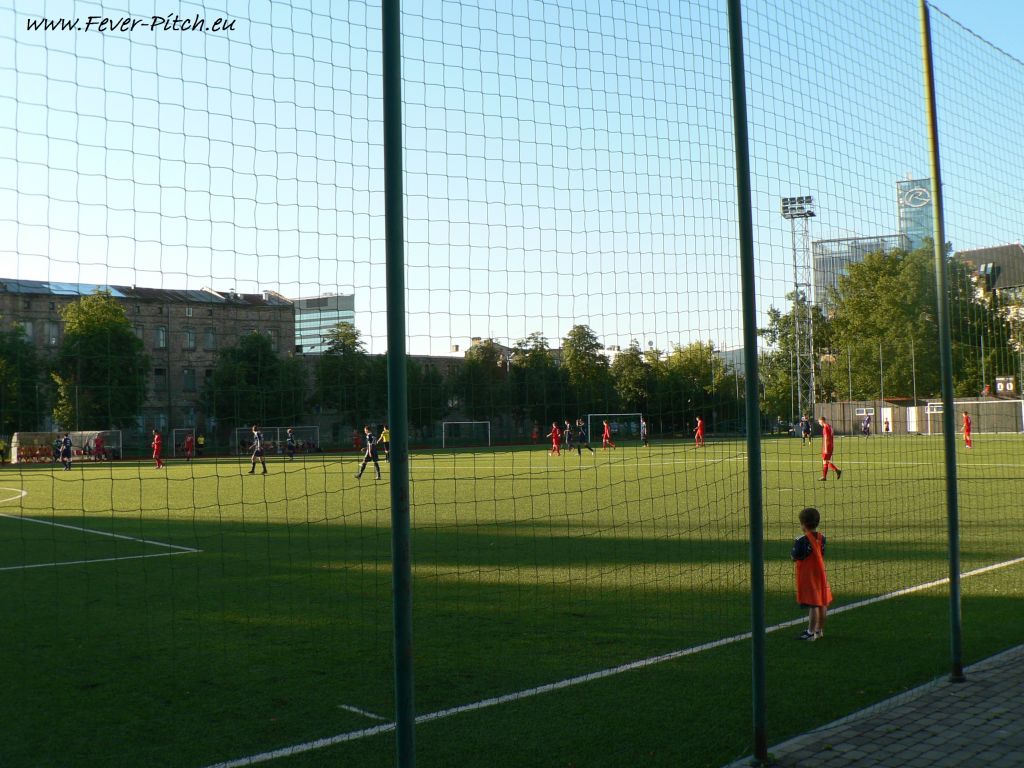 sondern zu Fuß ein paar Häuserecken auf einen Kunstrasenplatz, auf dem