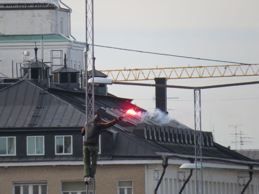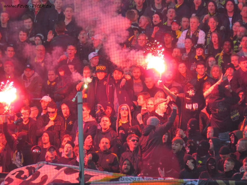 dazu immer wieder Bengalos und sonstige Pyrotechnik. Verlief aber dennoch sehr