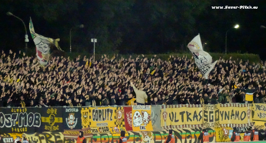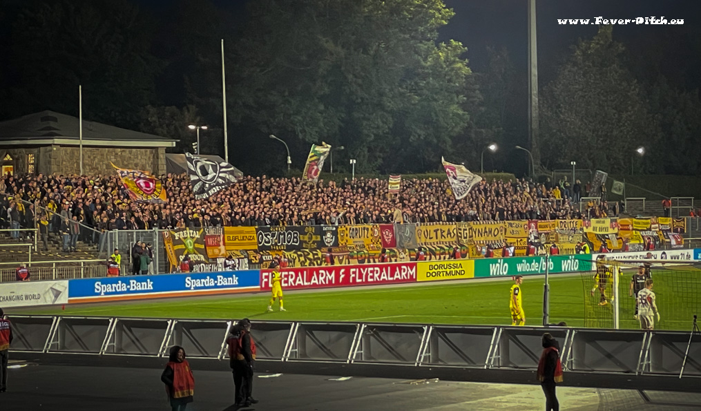 bis zum Eintreffen der „Ultras Dynamo“ komplett leer blieb und erst dann