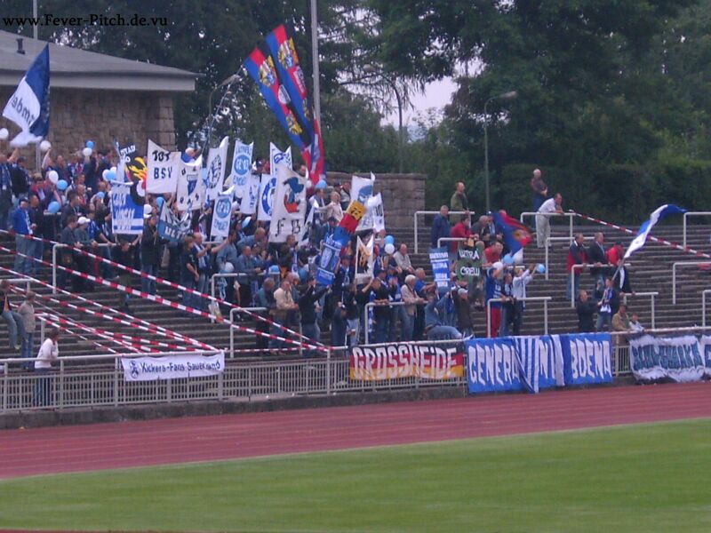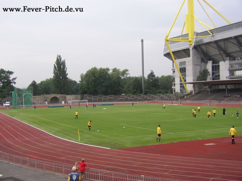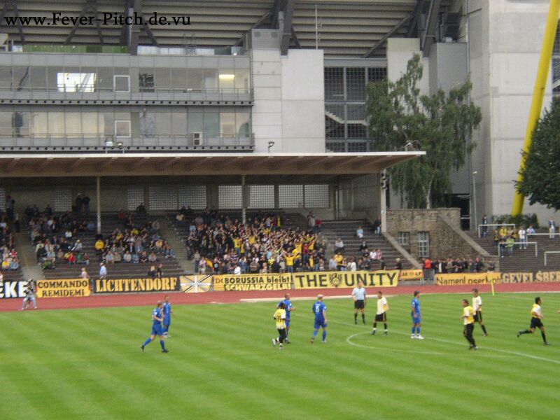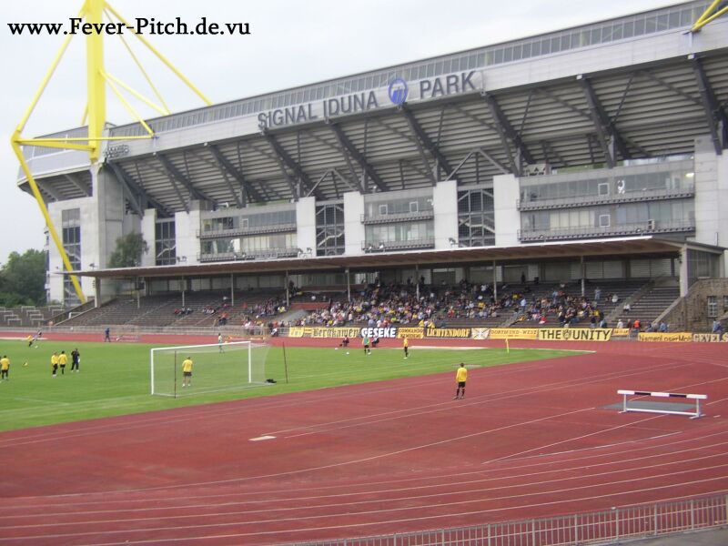 Hier kam man fast genau mit der Emder Busfahrercrew an, sodass am Kassenhäuschen des Stadions, welches sich direkt an das Westfalenstadion (jetzt Signal- Iduna Park) angliedert, einige bekannte Gesichter begrüßt wurden. Neben den Emdern waren auch zahlreiche Schwarzgelbe anwesend, wovon einige sicherlich nicht nur Fußball schauen wollten, es aber dennoch und trotz nur eines Eingangs und wenig Polizei ruhig blieb.