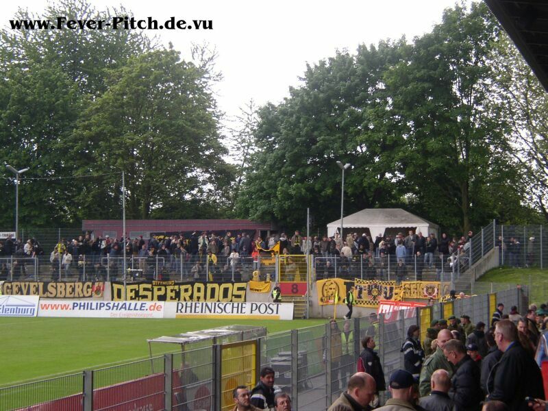 Der supportfreudige Anhang der Düsseldorfer befindet sich im Hintertorbereich,