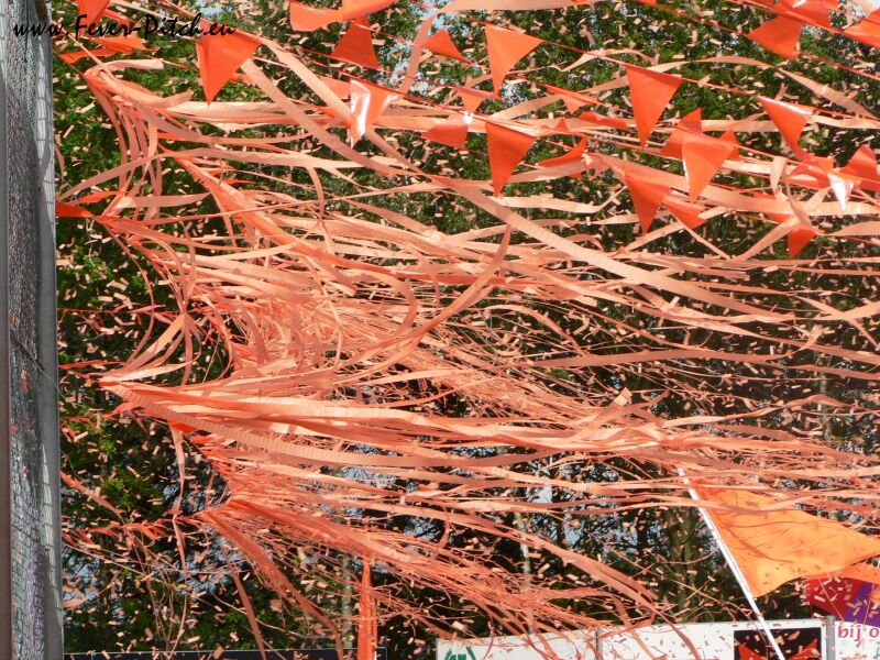 Straßenzüge mit orangen (Vereinsfarbe des Gastgebers) Wimpeln ausgestattet.