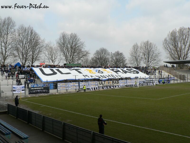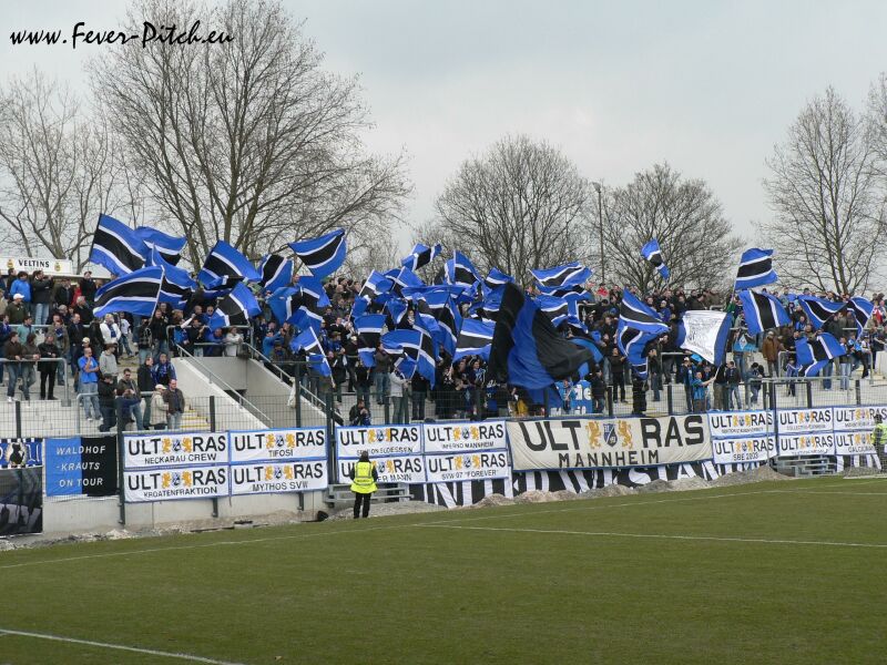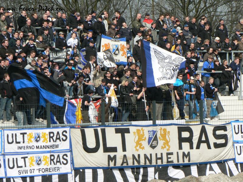 zeigten zu Spielbeginn eine riesige "Ultras Mannheim" Blockfahne und