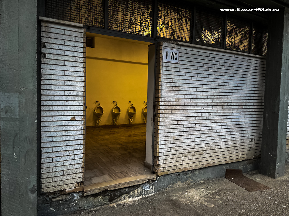 Füßen eines jeden Stadiontouristen. Das Stadion schmiegt sich von drei Seiten so