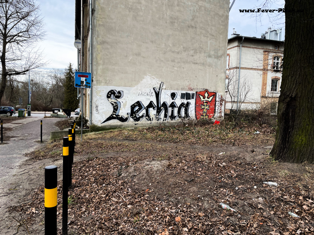 und leicht verblassten Lechia-Graffiti im Stadionumfeld sind stumme Zeugen