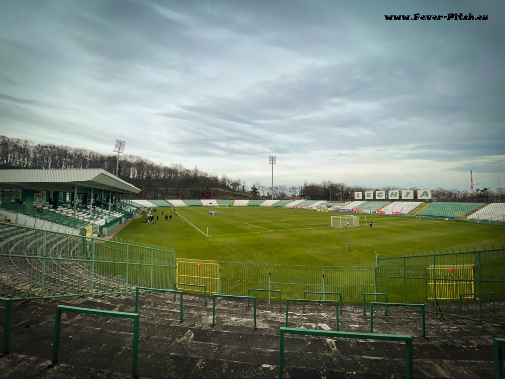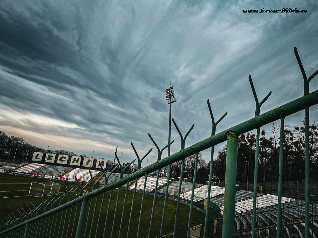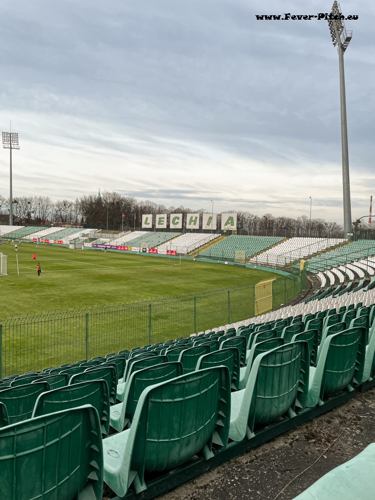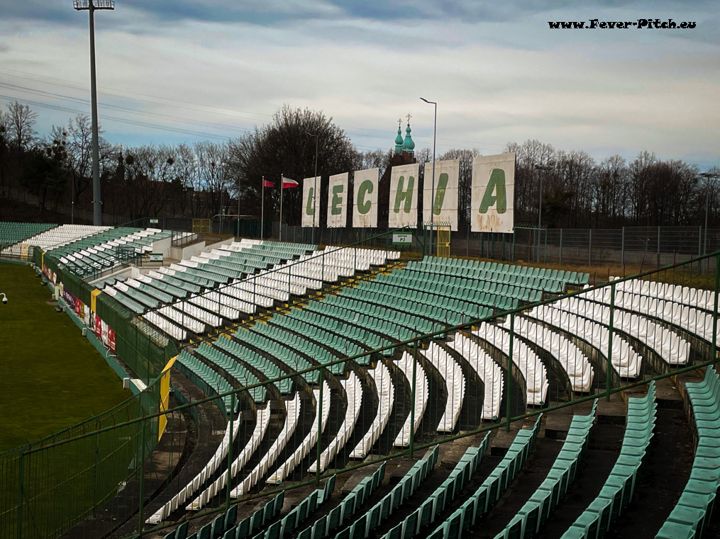 mit seinen grünweißen Sitzplätzen und dem charakteristischen "Lechia-Schriftzug"