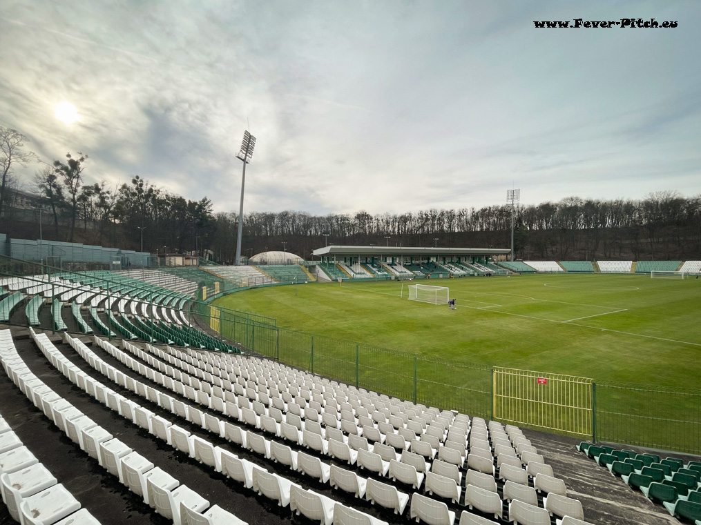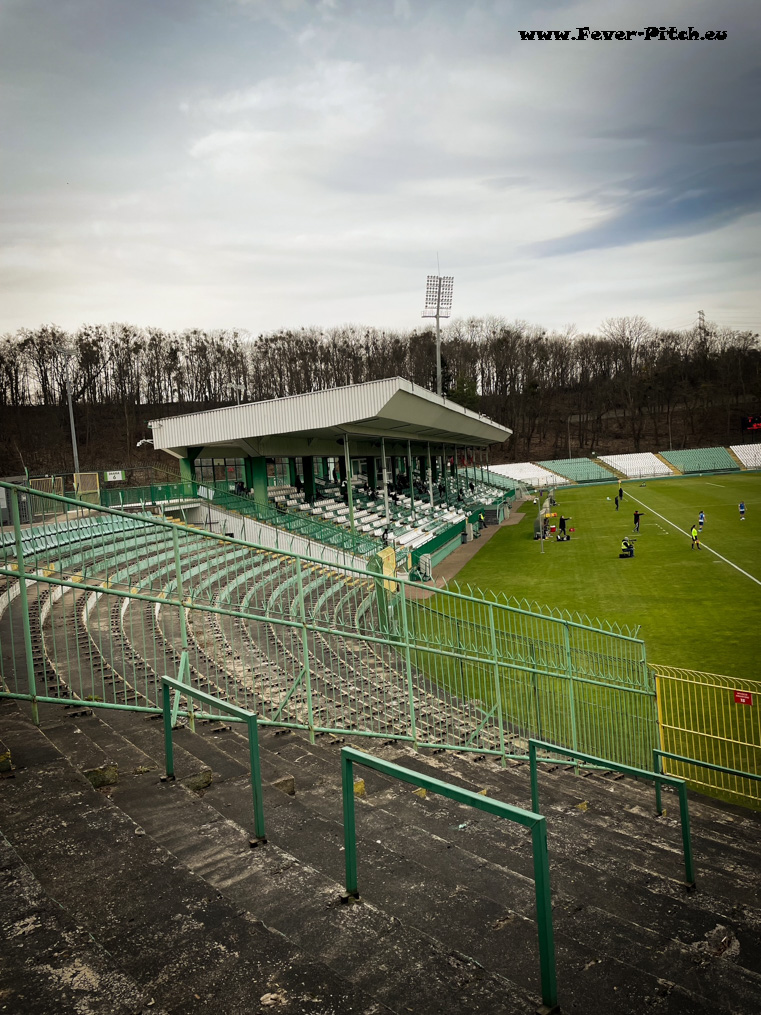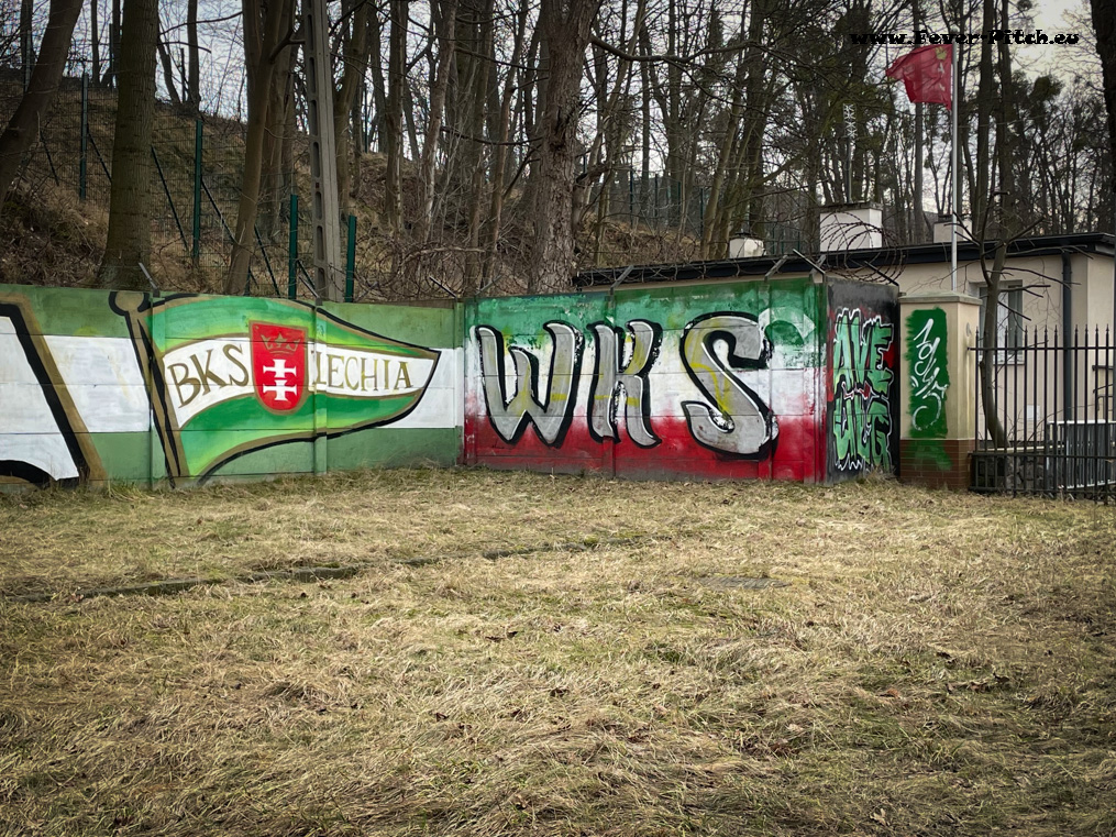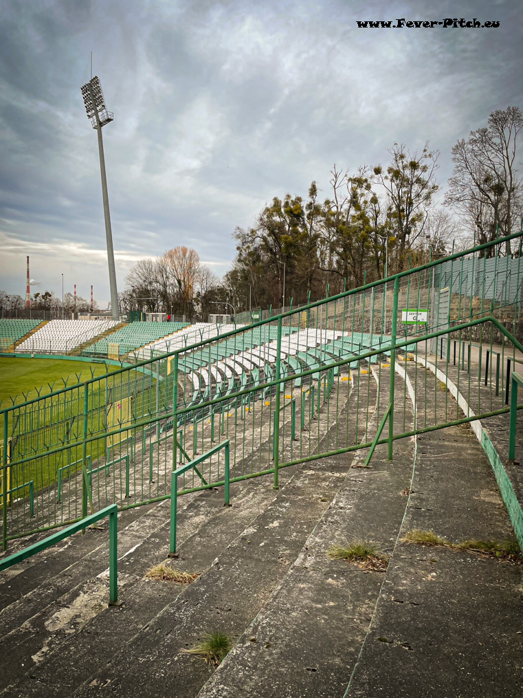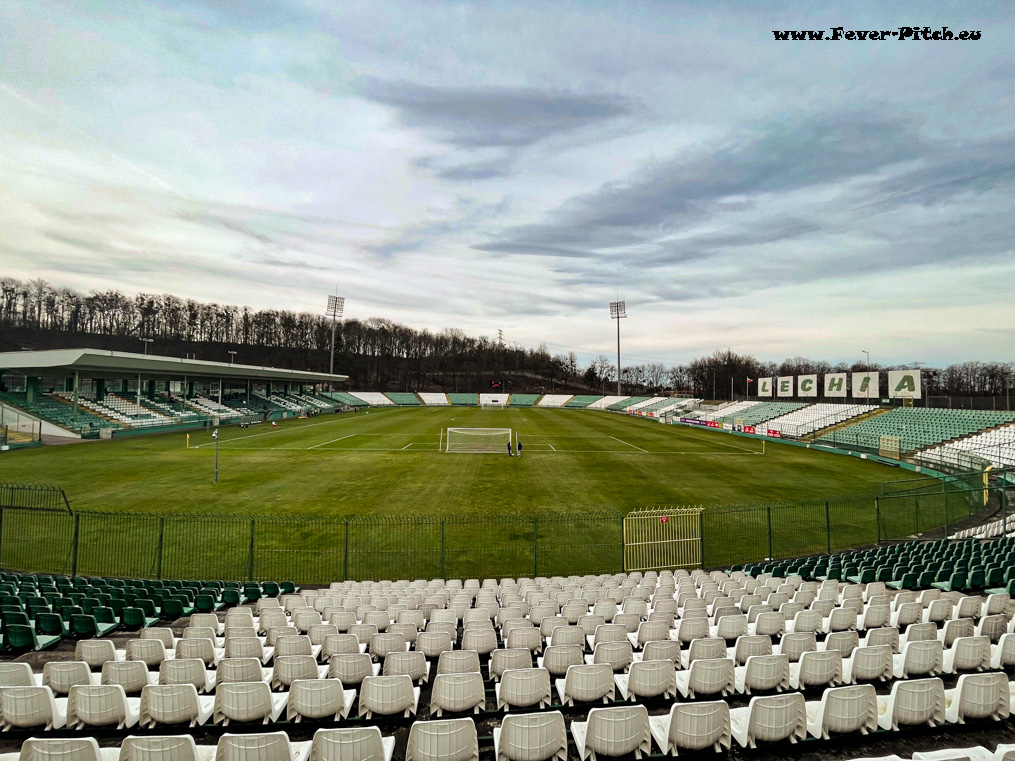 mit seinen grünweißen Sitzplätzen und dem charakteristischen "Lechia-Schriftzug"