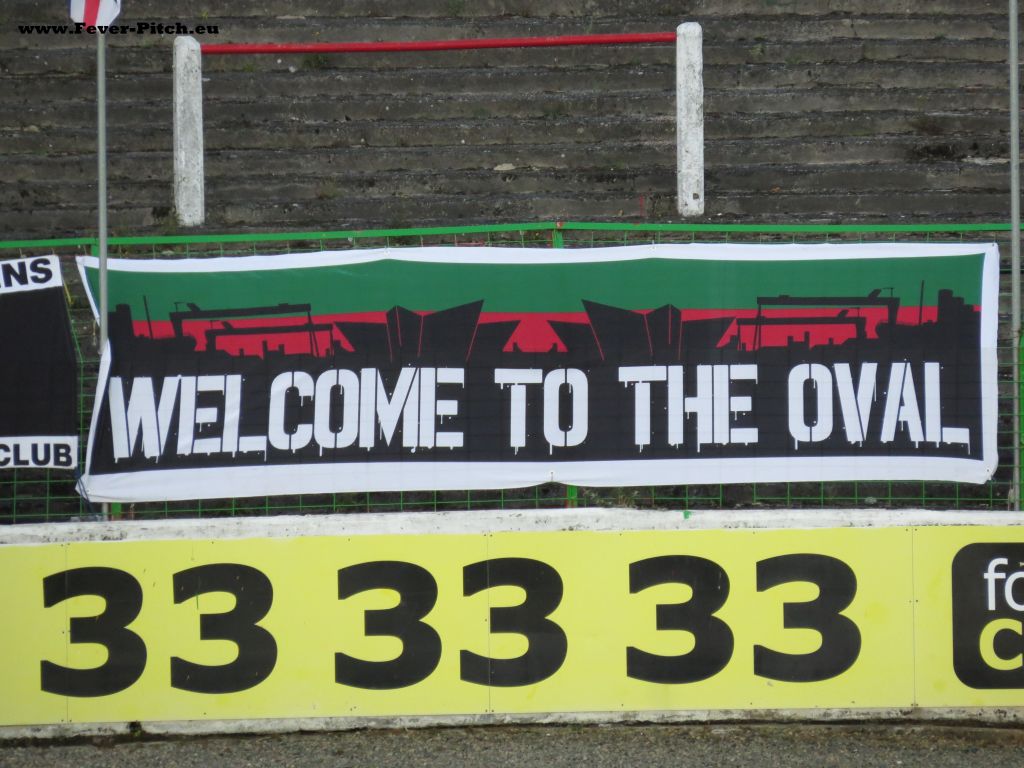 Die Kurven hinterm Tor ebenfalls sehr geil. Alte Betonstufen mit in Vereinsfarben