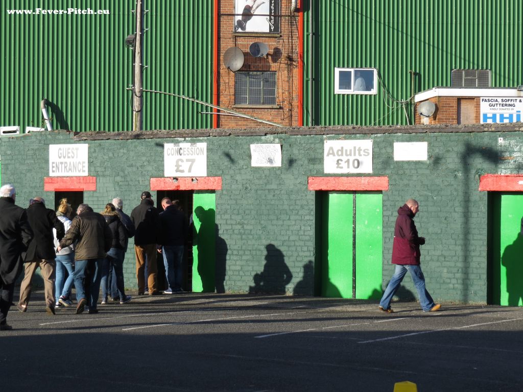 ebenfalls komplett in Vereinsfarben gehalten. Einlass erlangt man für 10 Pfund Einheitspreis,