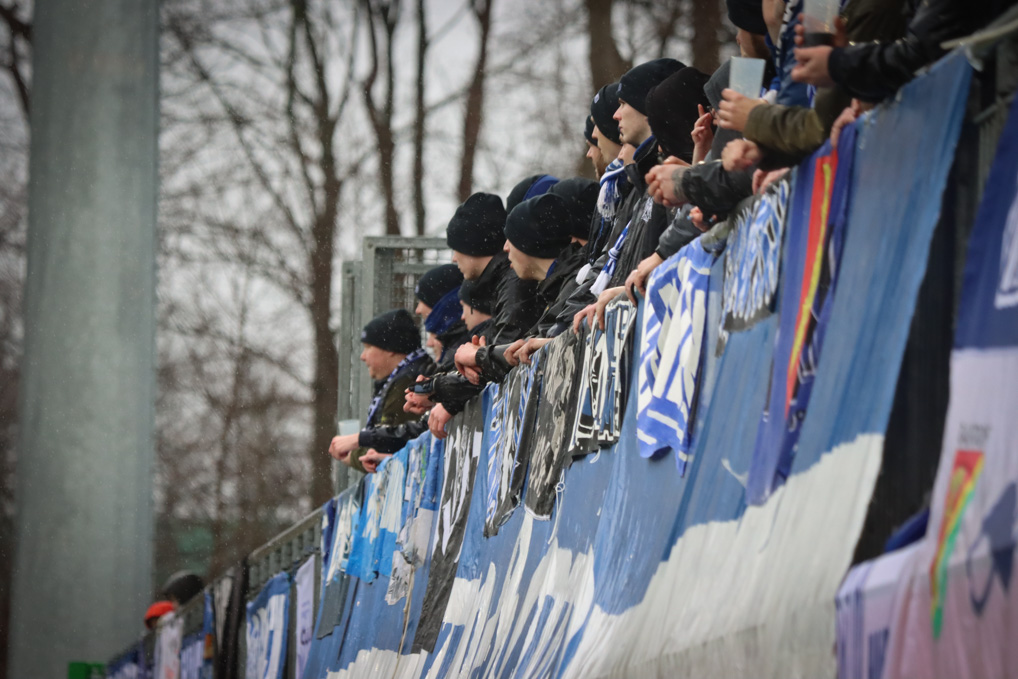 Eintreffen der Blauweißen recht dümmlich auf eben diesen.
