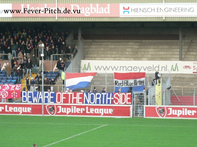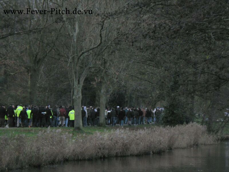 Gespannt wartete man auf die Dinge nach dem Spiel aber auch hier verlief alles glatt, denn die Taktik sah vor, dass zuerst der Gästeanhang in staatlicher Begleitung das Stadion verlässt und den Heimweg antritt (wir vermuteten, dass sie zu Fuß zurück nach Ijmuiden gangen, man weiß es aber nicht genau...), ehe der Heimanhang nach Hause oder sonst wo hin durfte, zumindest irgendwie nirgends zu sehen war.