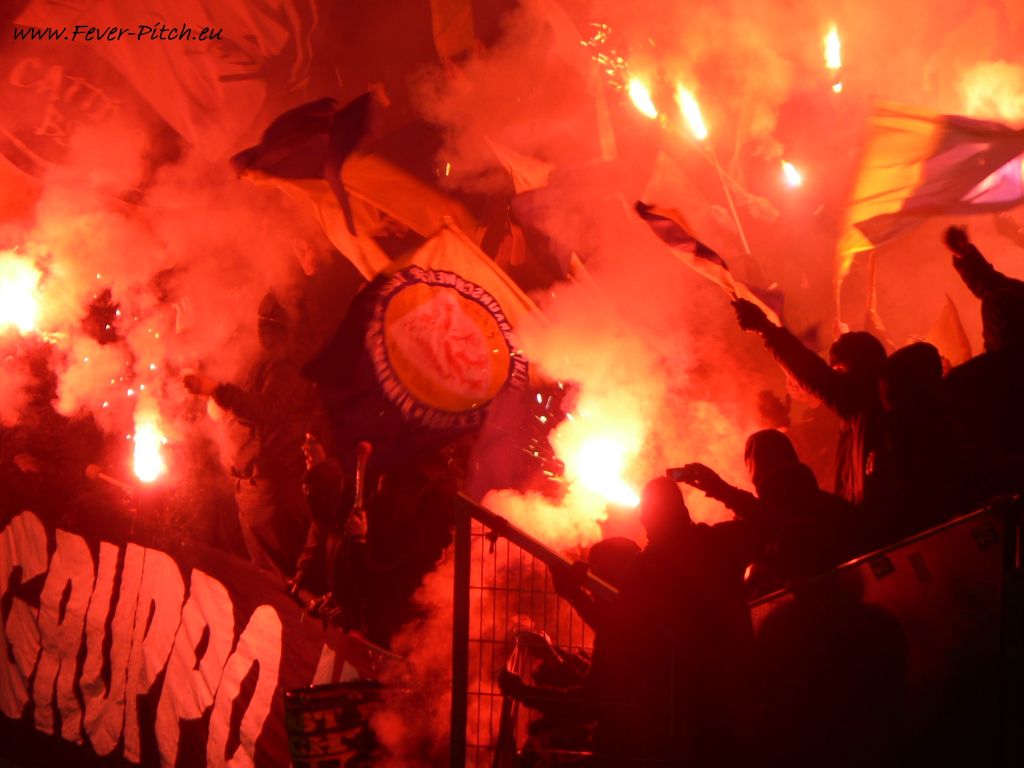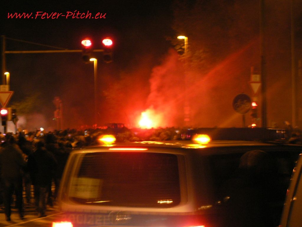 und Bengalos zog der Corteo durch die Straßen und am Ground angekommen,
