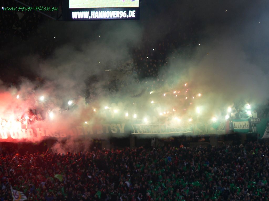 ZU Spielbeginn schuf Hannovers Nordkurve einen würdigen Rahmen, indem durch