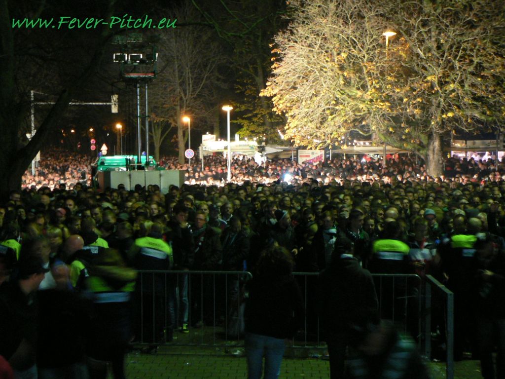 Spielbeginn ein ca. 1.500 Mann starker Haufen in Richtung Stadion in Bewegung.