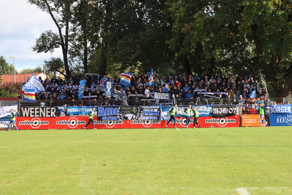 200 mitgereisten Emsländer im schönen Gästeblock des generell schönen Wilhelm-Langrehr-Stadions
