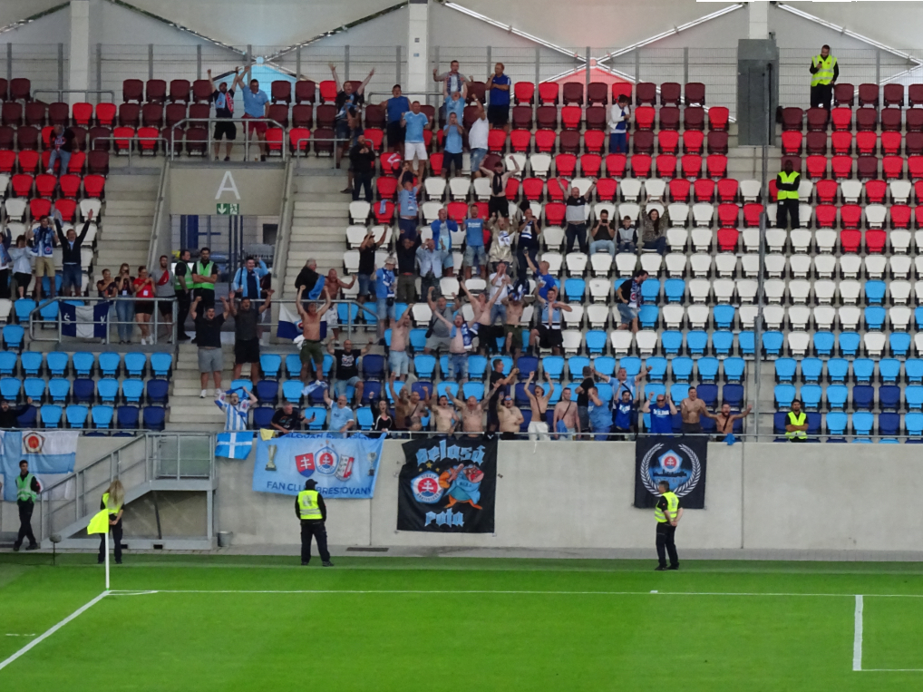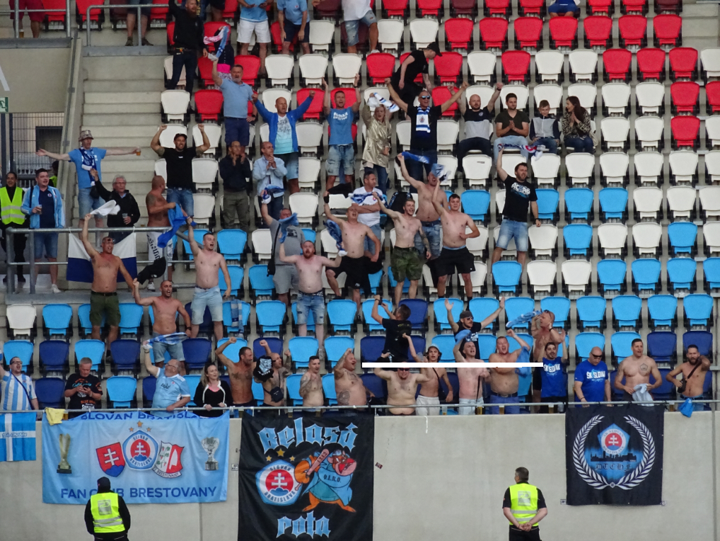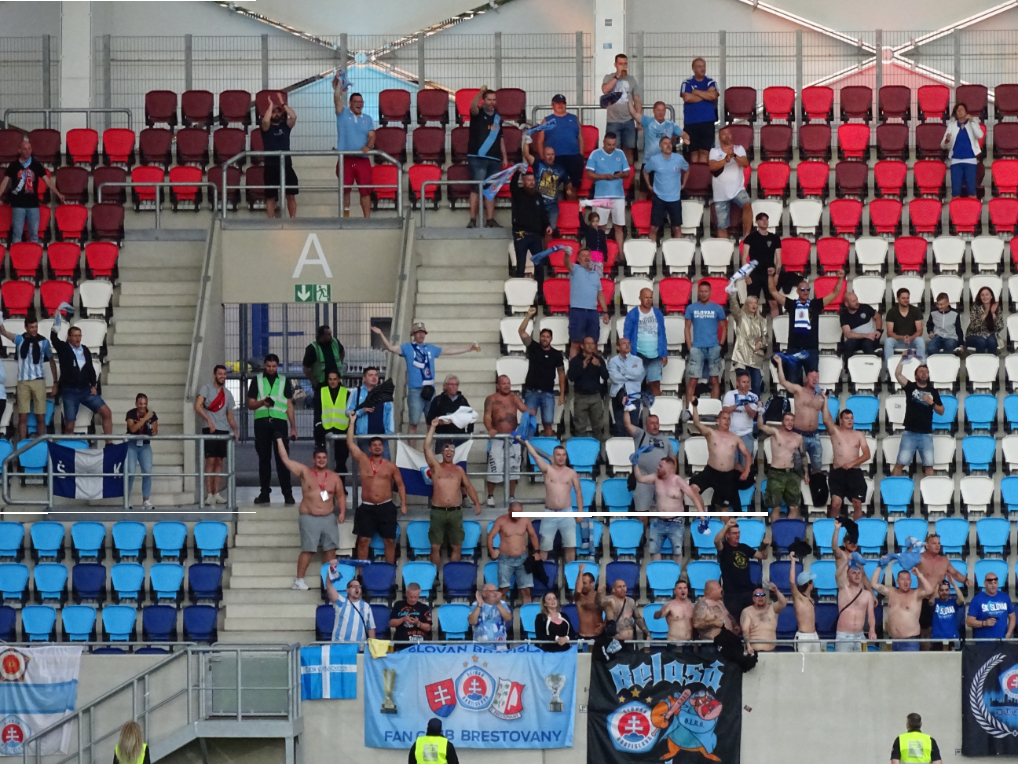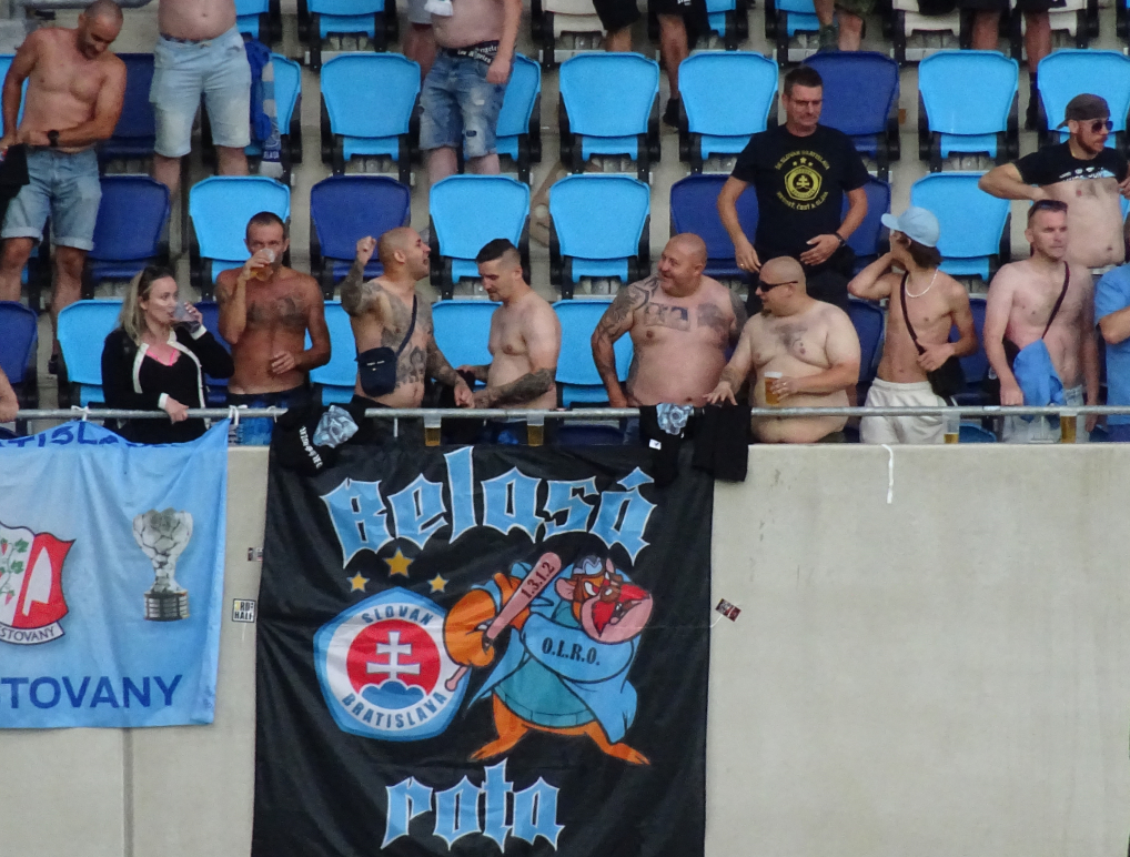 Ost-Module, die hier hinter der „Ultras Slovan Pressburg“-Fahne stehen und