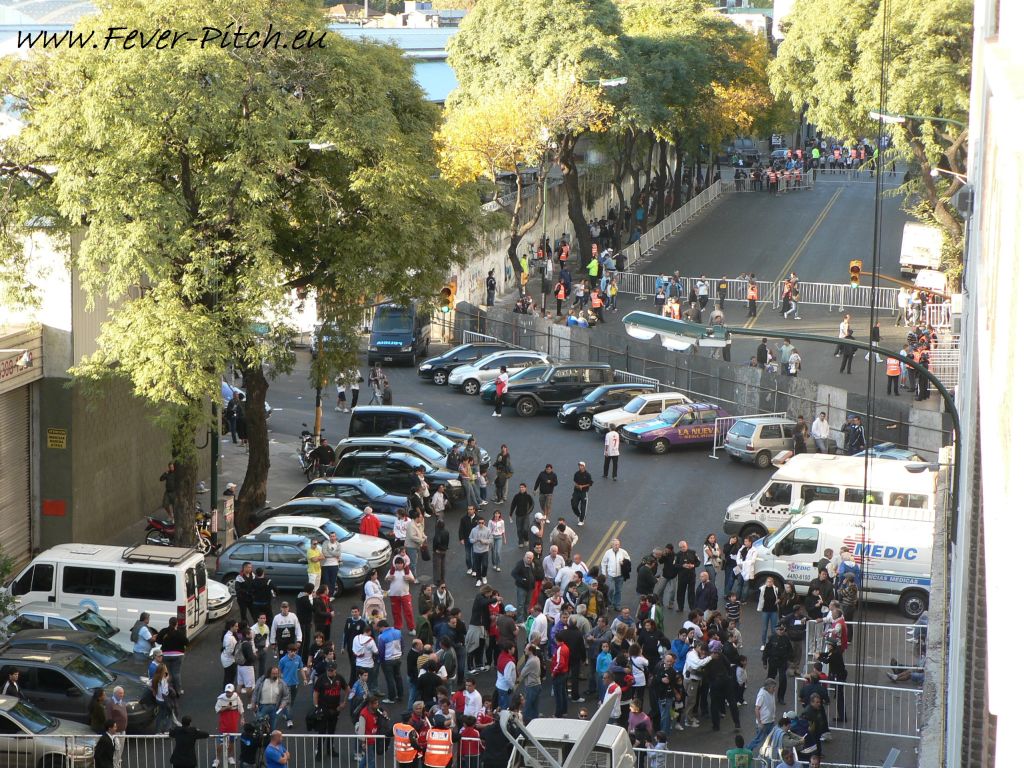 raus. Ein Bus mit Boca-Leuten, die singend aus den Fenstern hängen, biegt