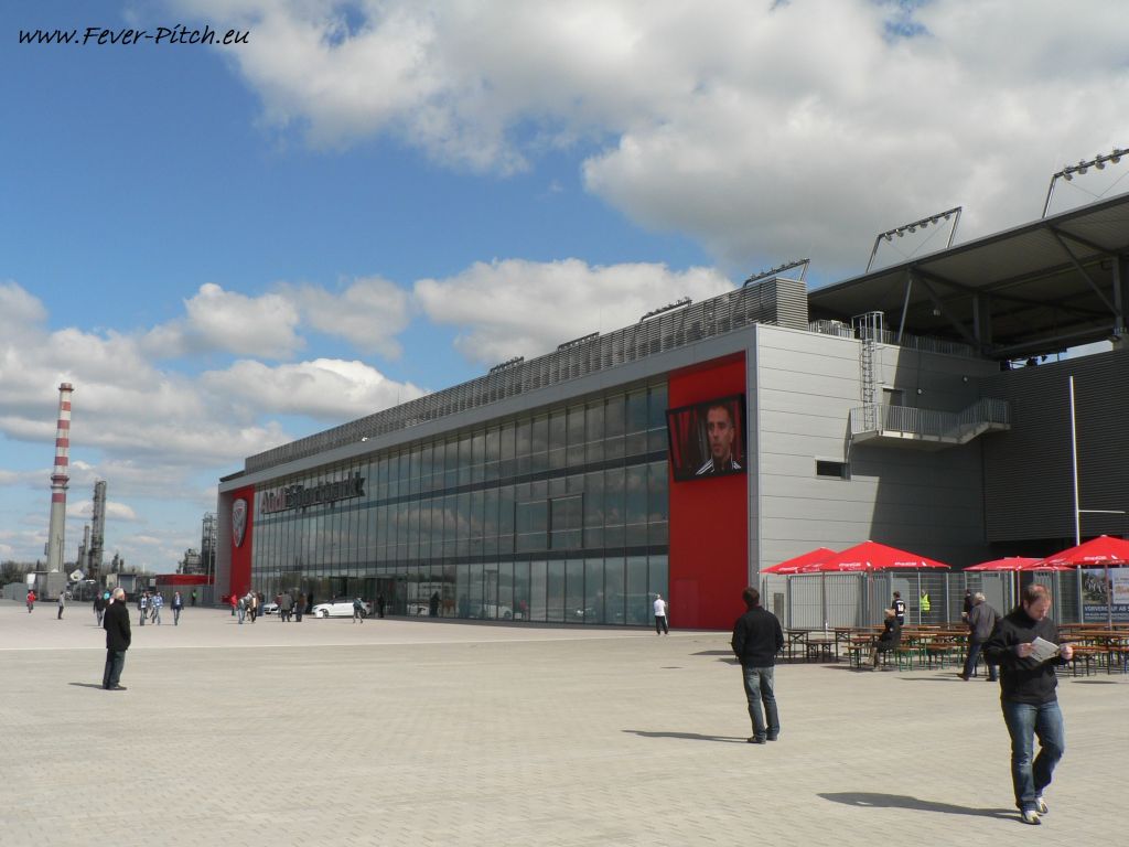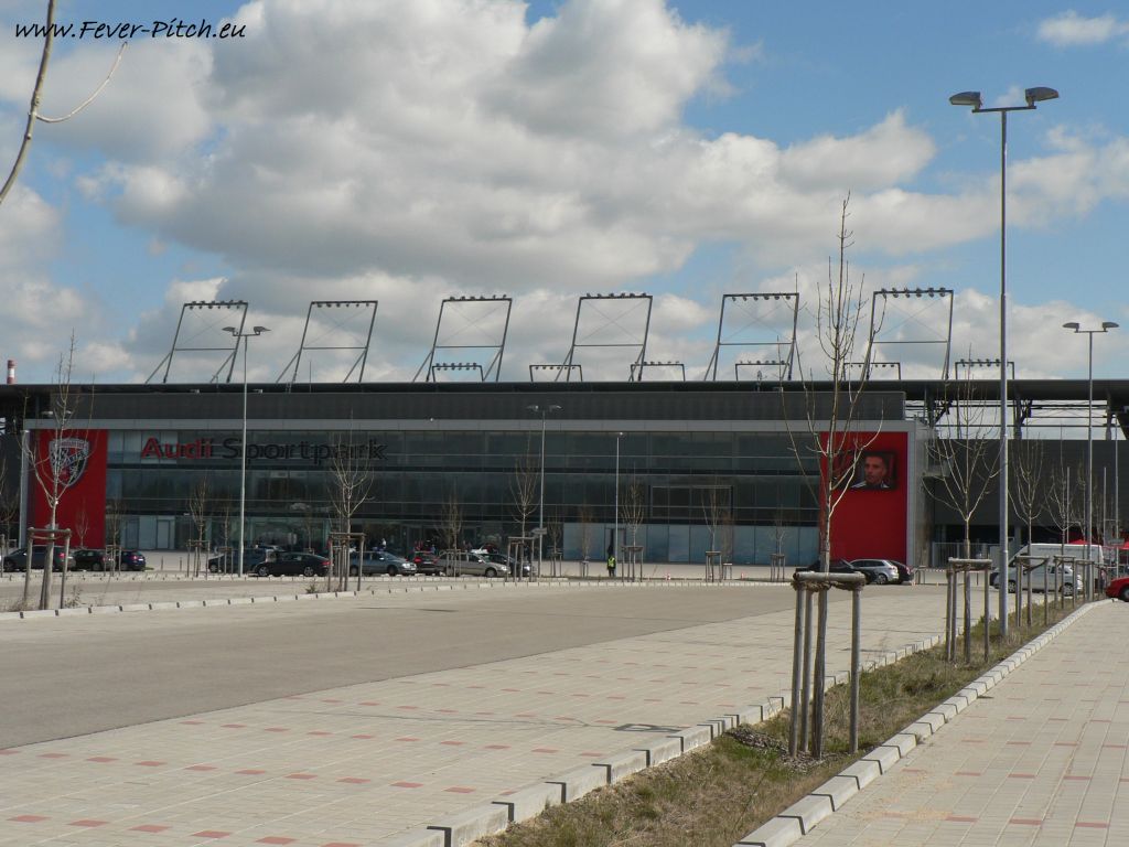 Anstoß dort angekommen. Am Audi-Sportpark natürlich noch nicht viel los aber