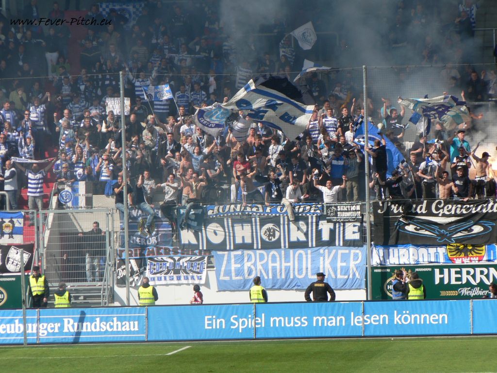 Fanszene des FC Ingolstadt versammelt sich hinterm Tor, der aktive Teil dürfte