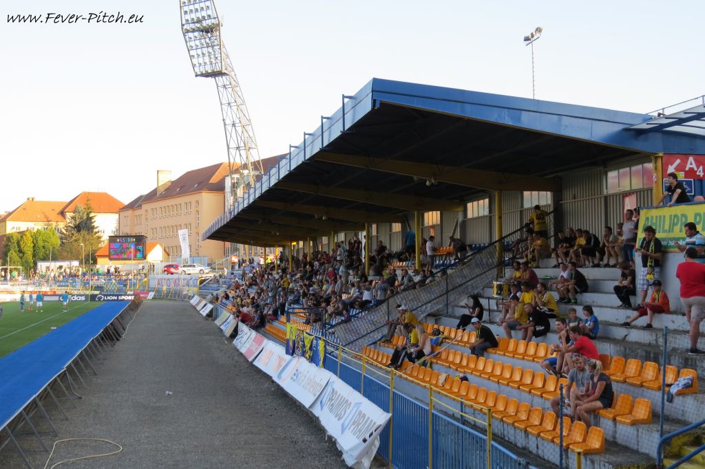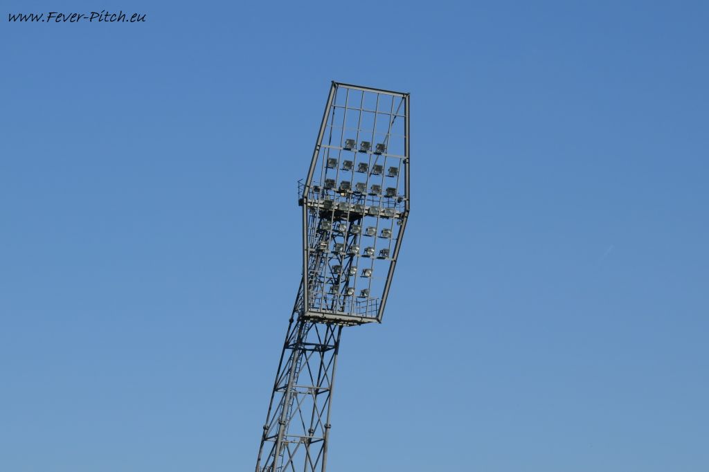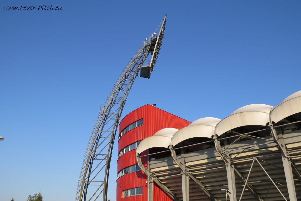Schotterparkplatz in Stadionnähe geparkt. Tickets für die Hintertortribüne gab