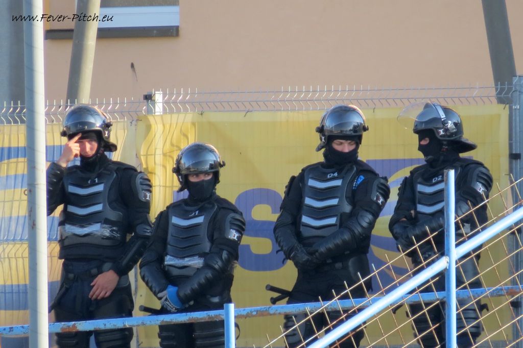 vorgehaltener Schutzschildern dumm herumstand, kritisch beäugt wurde.
