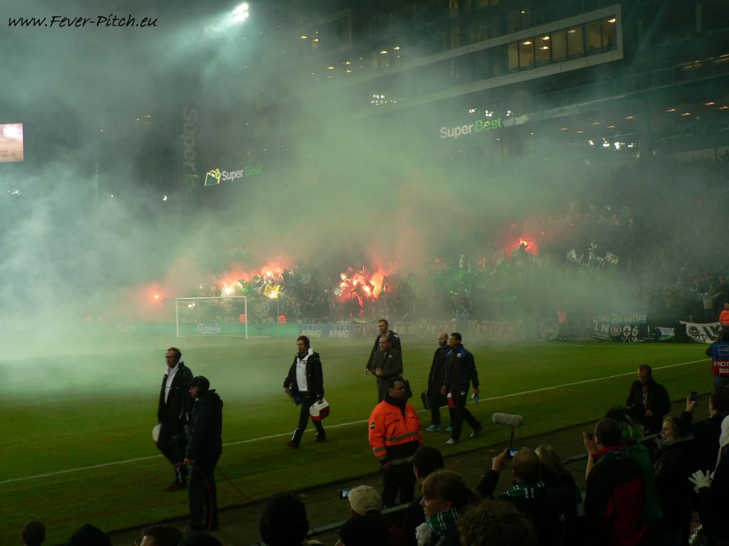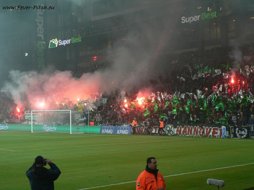 Niedersachsen gefüllt. Die aktive Kopenhagen-Szene findet sich am linken unteren Rand der Hintertortribüne und wusste