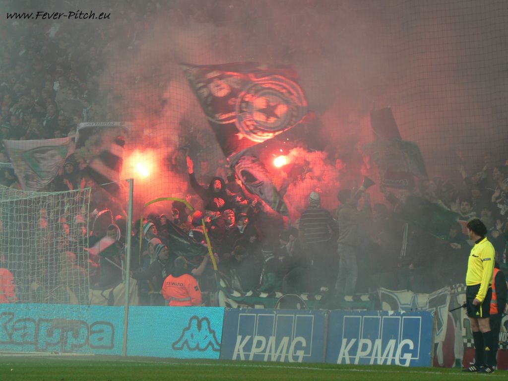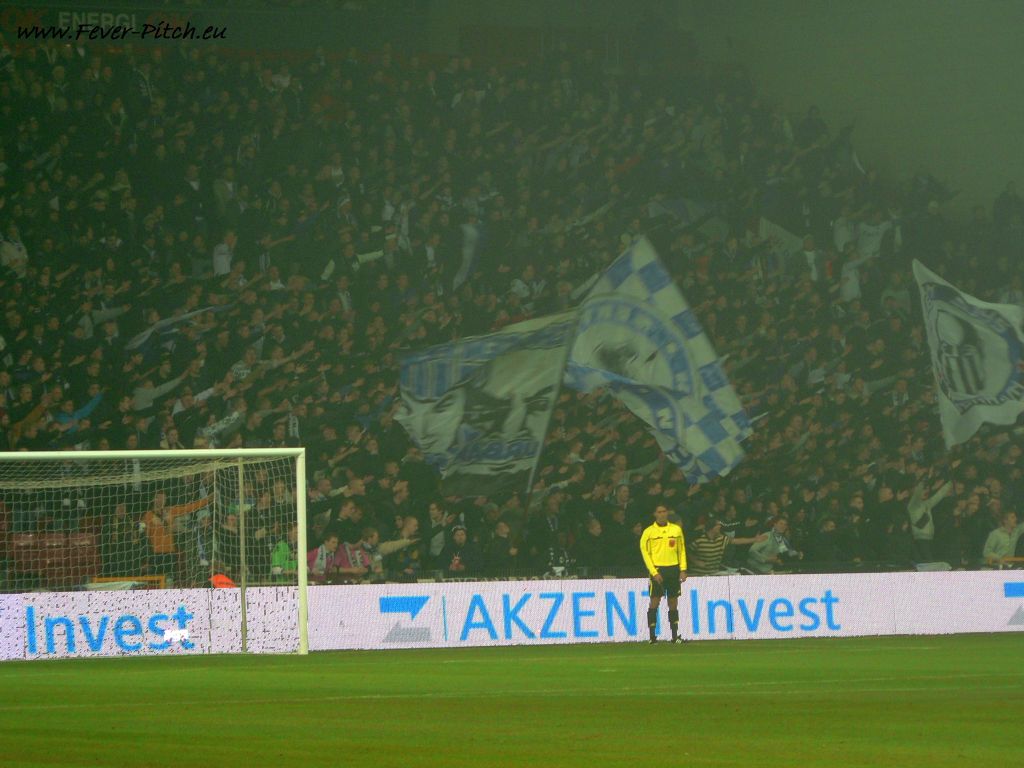immer wieder wurden Bengalos gezündet und laute Gesänge hallten durch die