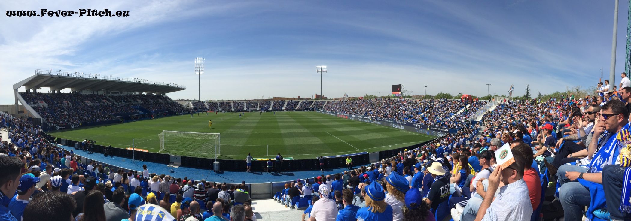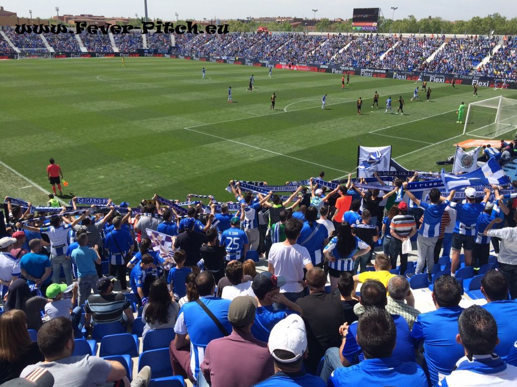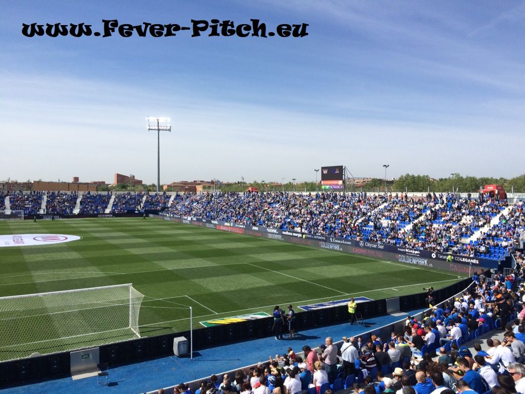 Leganes hat einen kleinen, gut aufgelegten Stimmungshaufen von vielleicht so 50 Aktiven schräg hinterm Tor und positiv überrascht war ich zudem dadurch, dass etwa 100 Anhänger des „kleinen“ Clubs aus Barcelona mitgereist waren. Hören konnte ich von denen aufgrund der Entfernung zwar nix, aber von einem Teil des Haufens gab es ständig Bewegung, von daher soll es wohl ok gewesen sein.