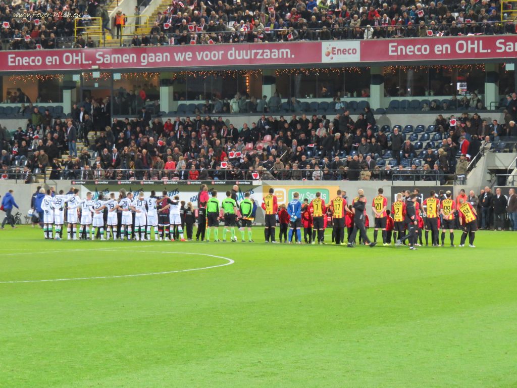Die Auswahl des o. g. Kicks kam erst nach einigem Hickhack zustande, denn ursprünglich war der Zweitligakick im grenznahen Maasmechelen gegen Royal Antwerpen angedacht, aber die Verantwortlichen des Heimteams waren belgientypisch recht komisch und verkündeten via Homepage einen nur bis Mittag andauernden Ticketverkauf, bei Anstoß um 20 Uhr wohlgemerkt.
