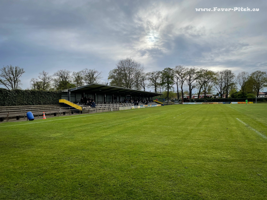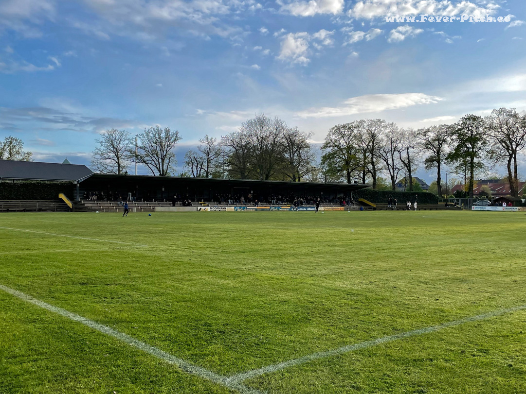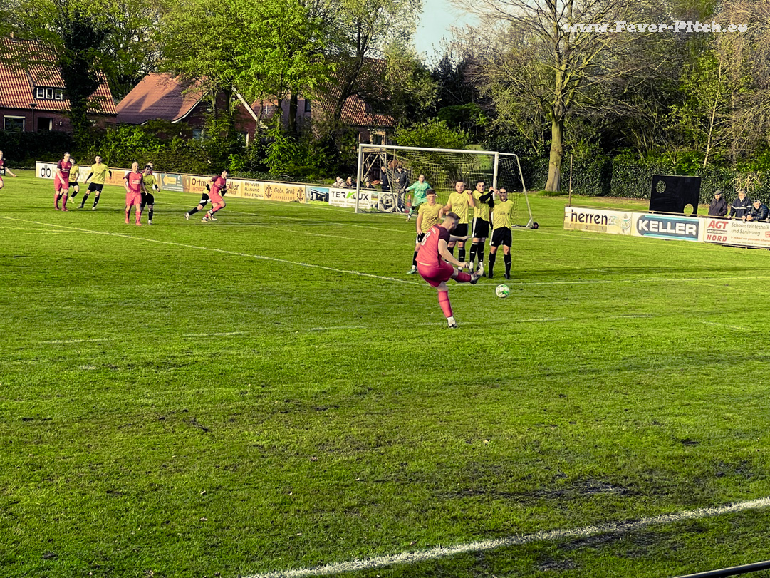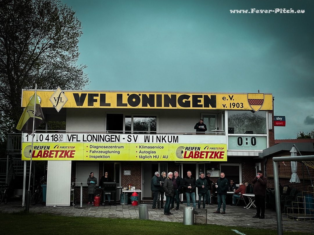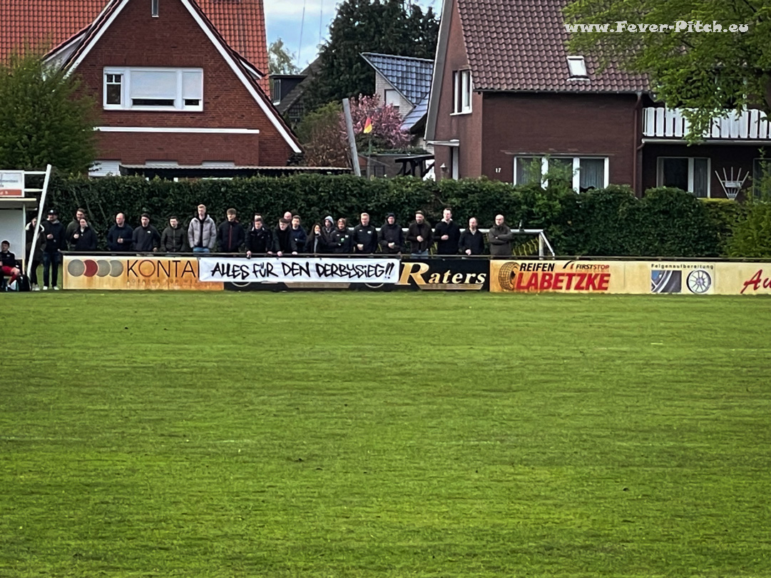 Winkum ist ne kleine Bauernschaft oder sowas südlich von Löningen und schaut man sich das mal bei Google Maps an, so sieht man, dass da nur ein paar Häuser stehen. Dennoch positionieren sich am Spielfeldrand rund 25 Jugendliche so, dass sie eindeutig als „Gästefans“ zu erkennen waren. Hinter nem „Alles für den Derbysieg-Banner" nämlich. Support oder dergleichen natürlich Fehlanzeige. Dennoch netter kleiner Feierabendausflug.