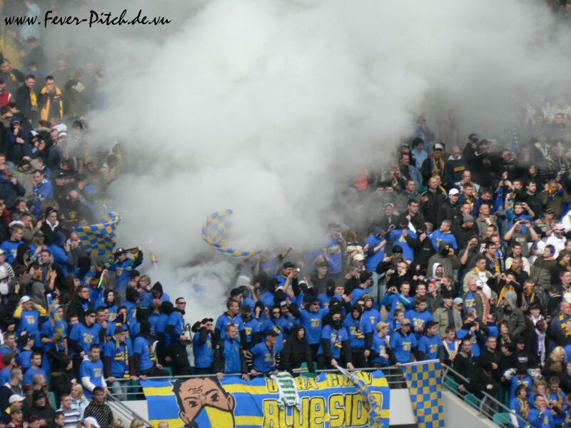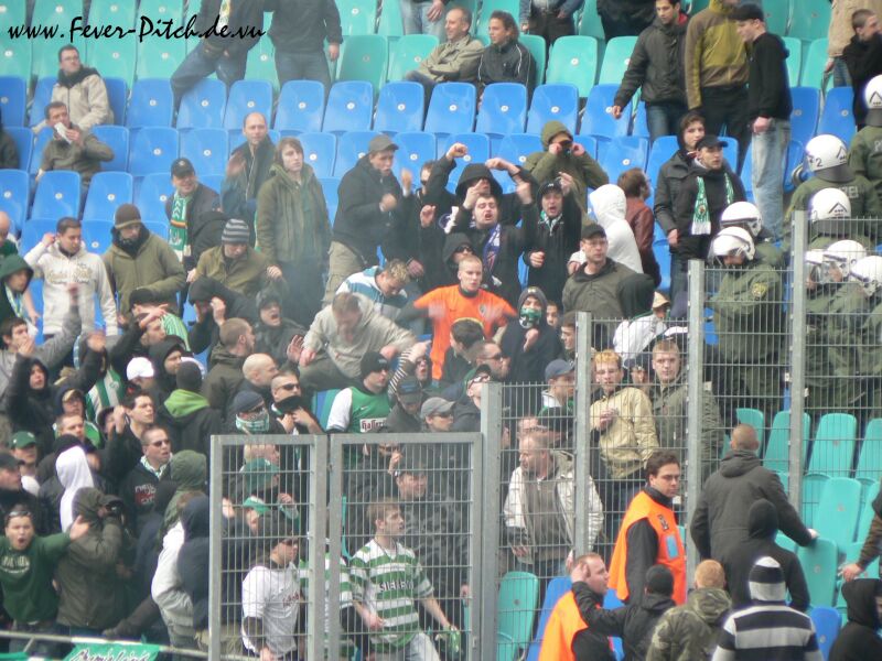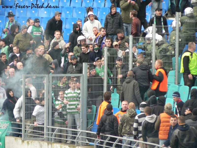 am Trennzaun sowie einer Leuchtspur mitten in den Hoolhaufen der Lokisten kam.