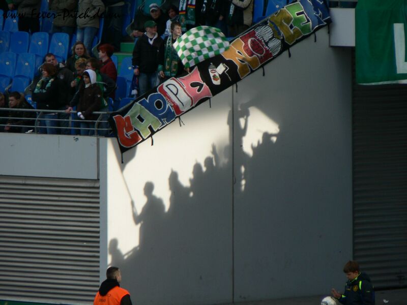 Nach der Halbzeitpause hing die Gruppe sogar ihre Zaunfahne ab und verließ